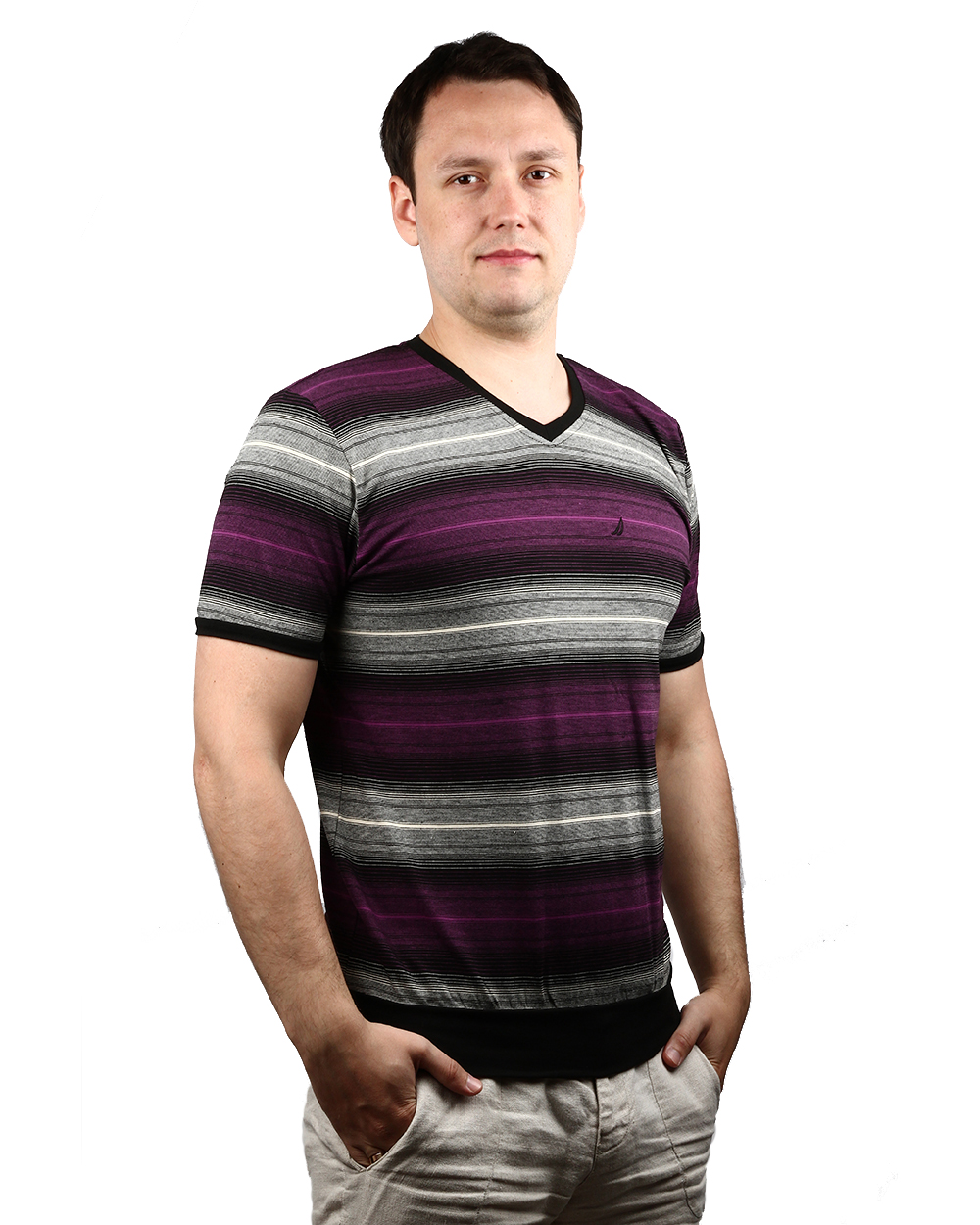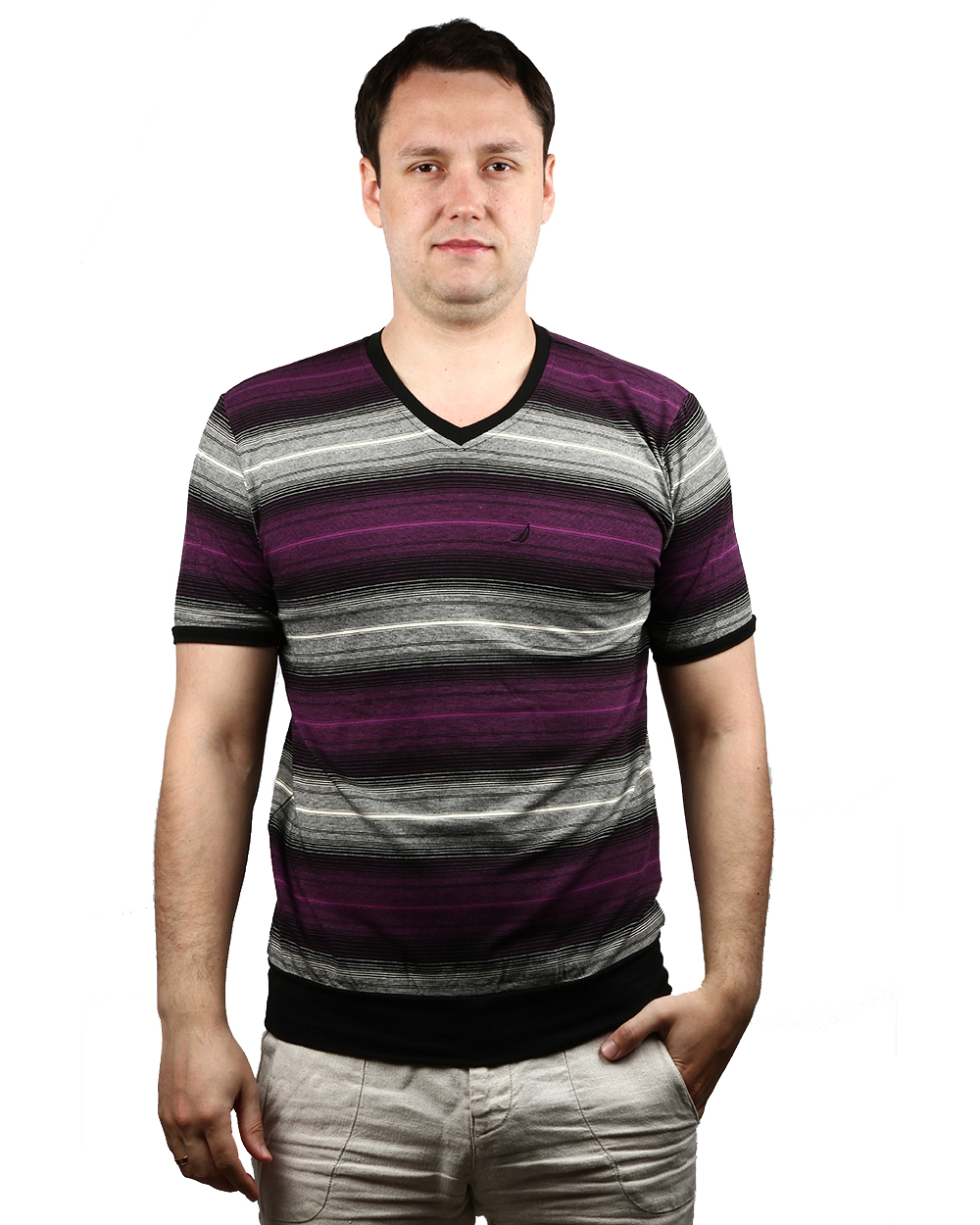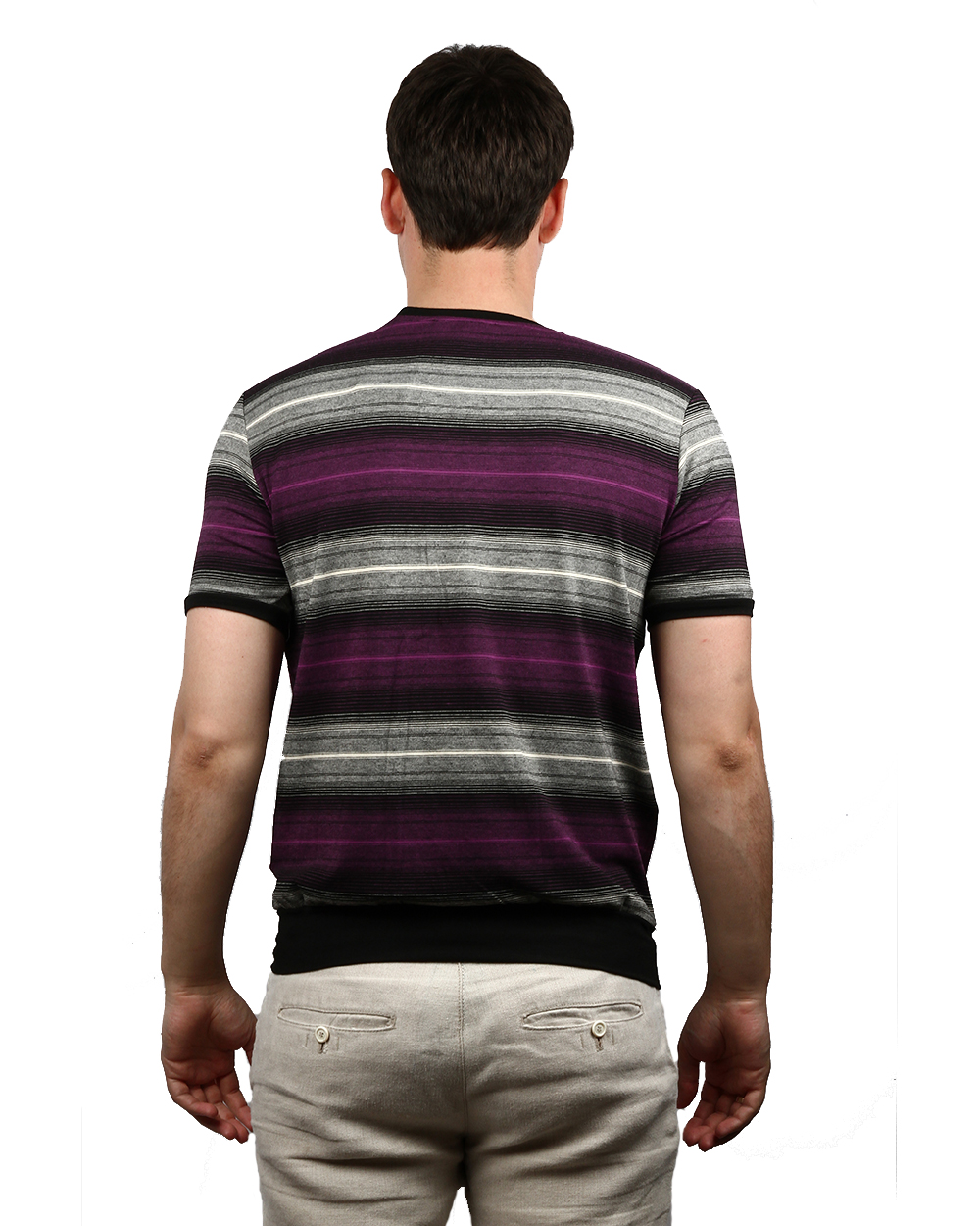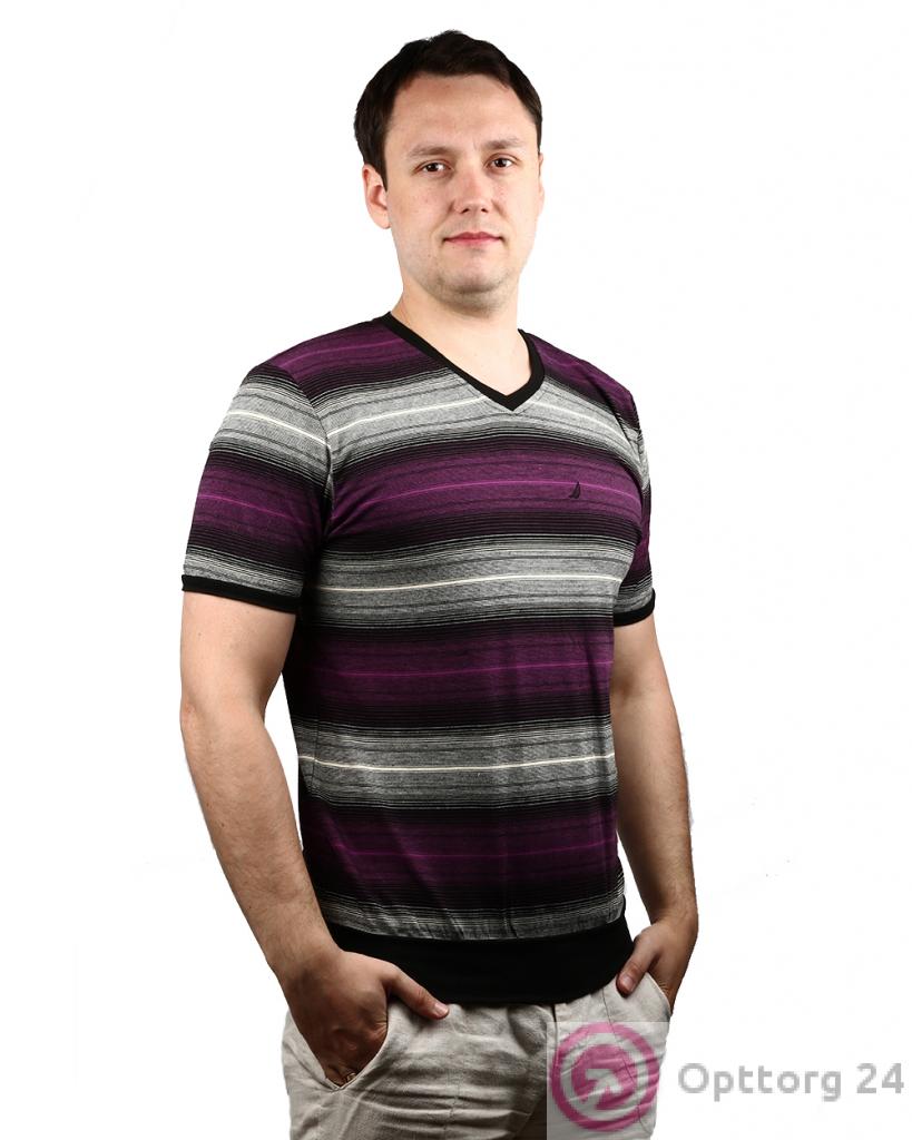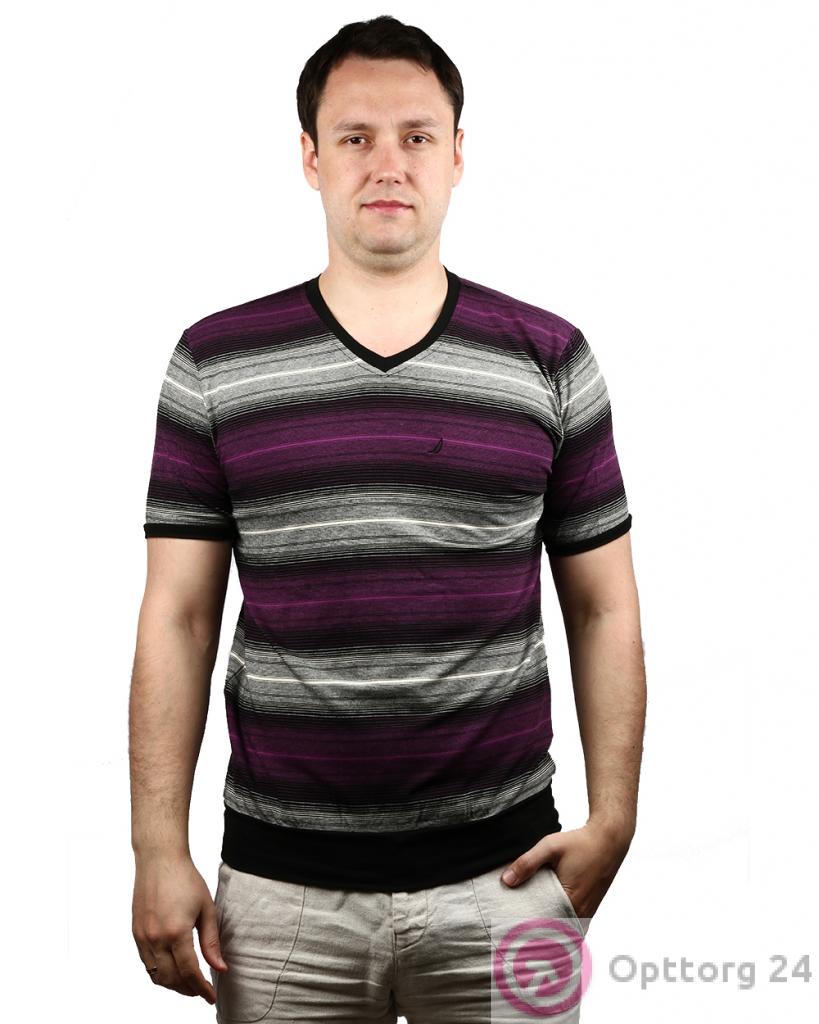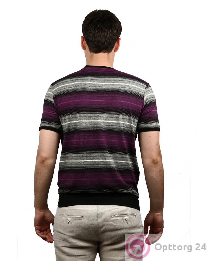 Футболка мужская серого цвета с фиолетовой полоской оптом