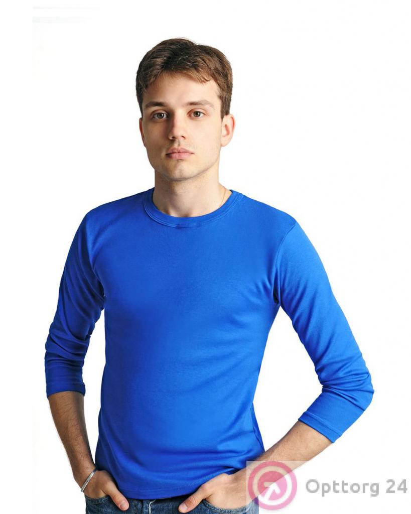 Футболка мужская синего цвета сдлинным рукавом оптом