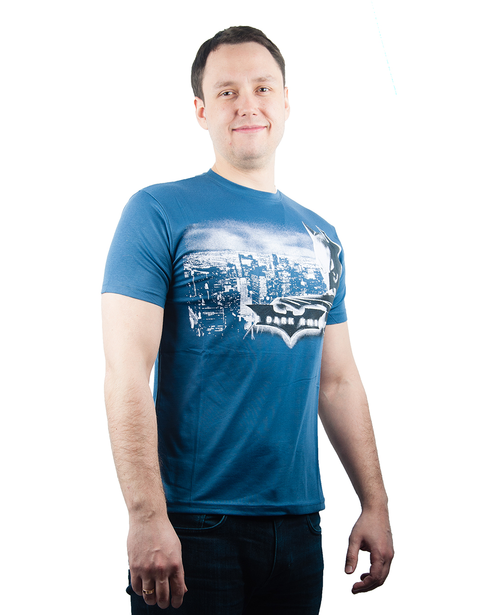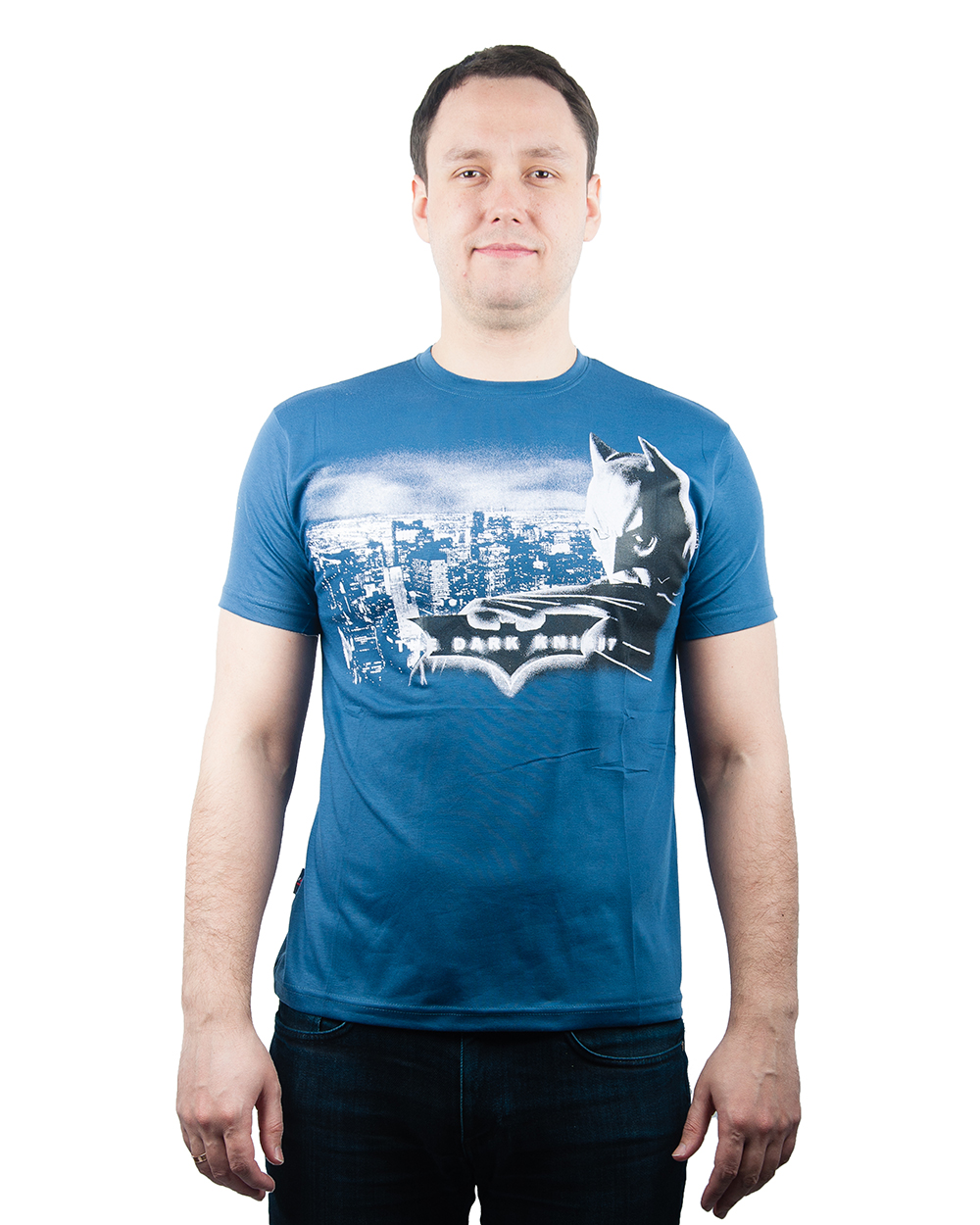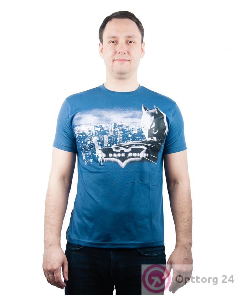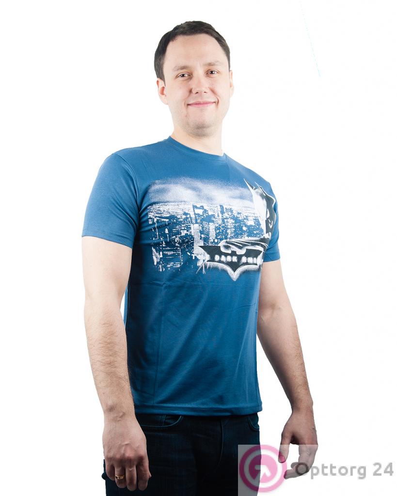 Футболка мужская синего оттенка с принтом "Dark knight" оптом