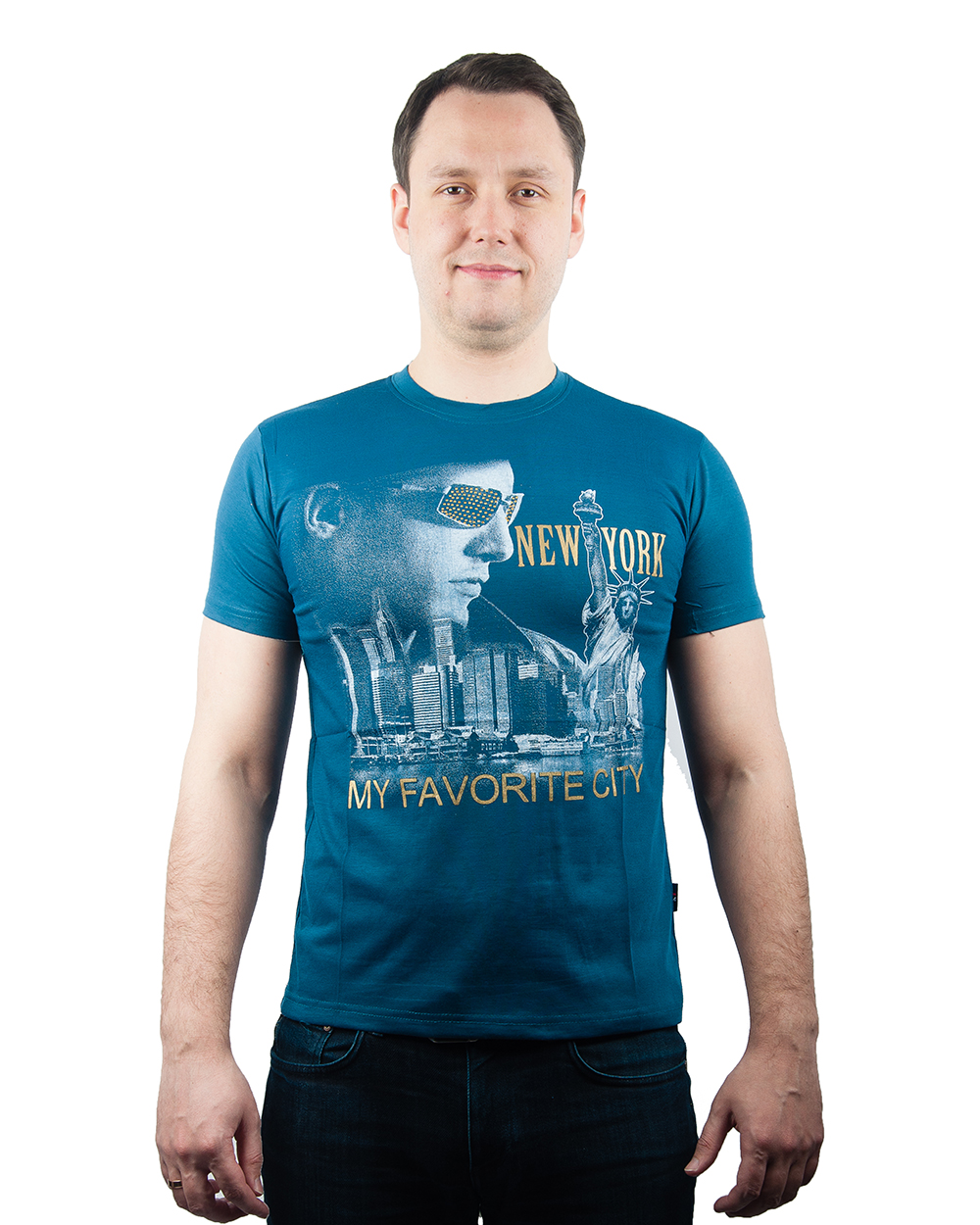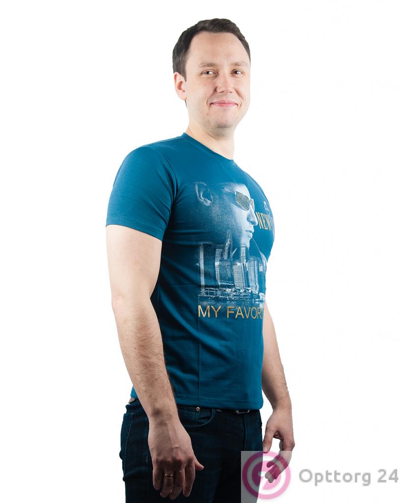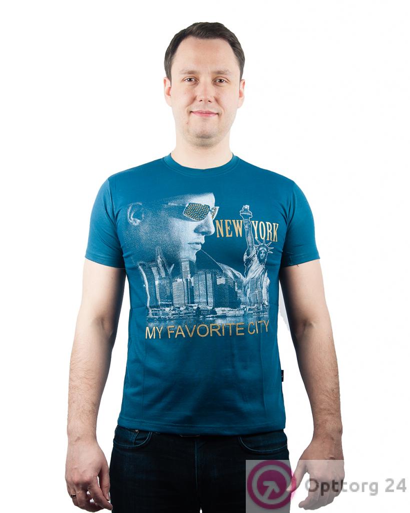 Футболка мужская синего оттенка с принтом "My favorite city" оптом
