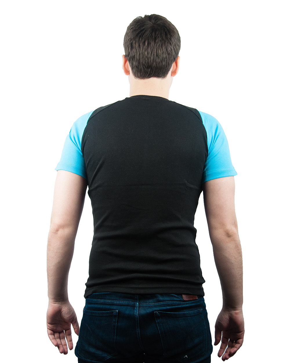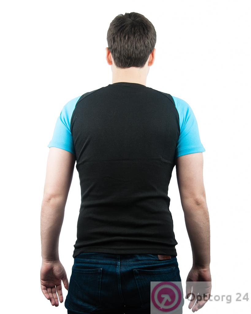 Футболка мужская спортивная черная с голубыми вставками оптом