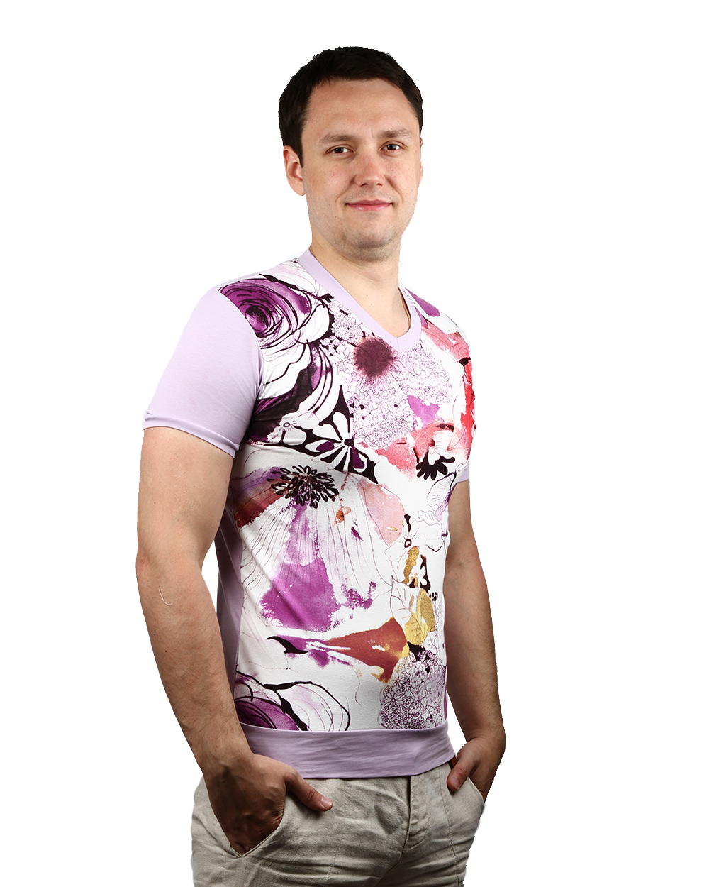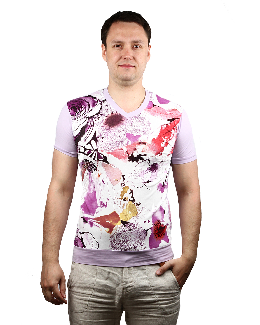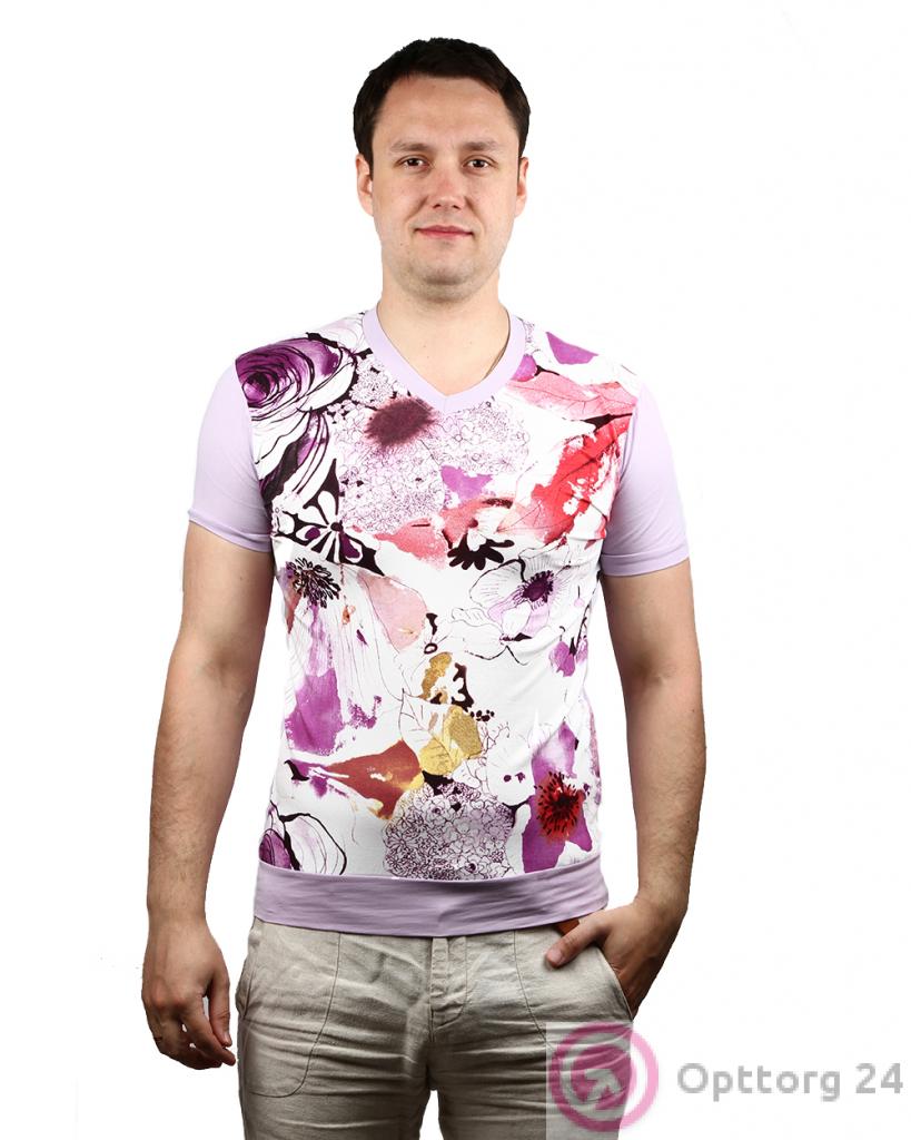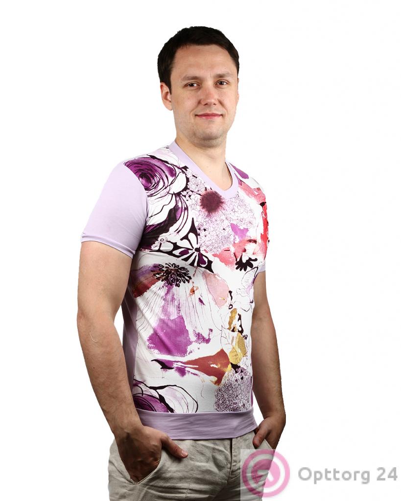 Футболка мужская светло-розового цвета с принтом оптом