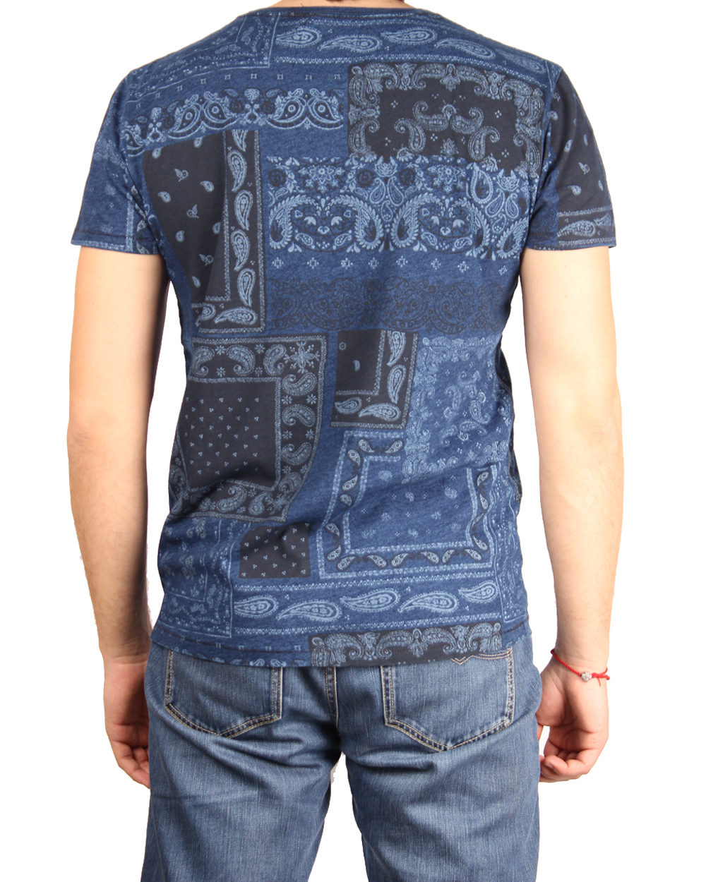 Качественная и стильная футболка темно синего цвета. Спереди и сзади нанесен красивый геометрический принт. Футболка из хлопка, поэтому совершенно не парит в жаркий день. Прекрасный выбор для любителей стиля casual.