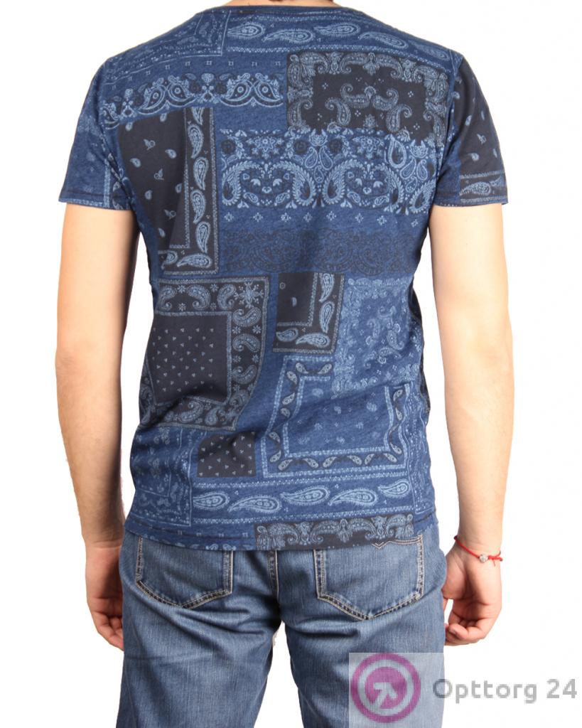 Футболка мужская темно-синяя с геометрическим принтом оптом