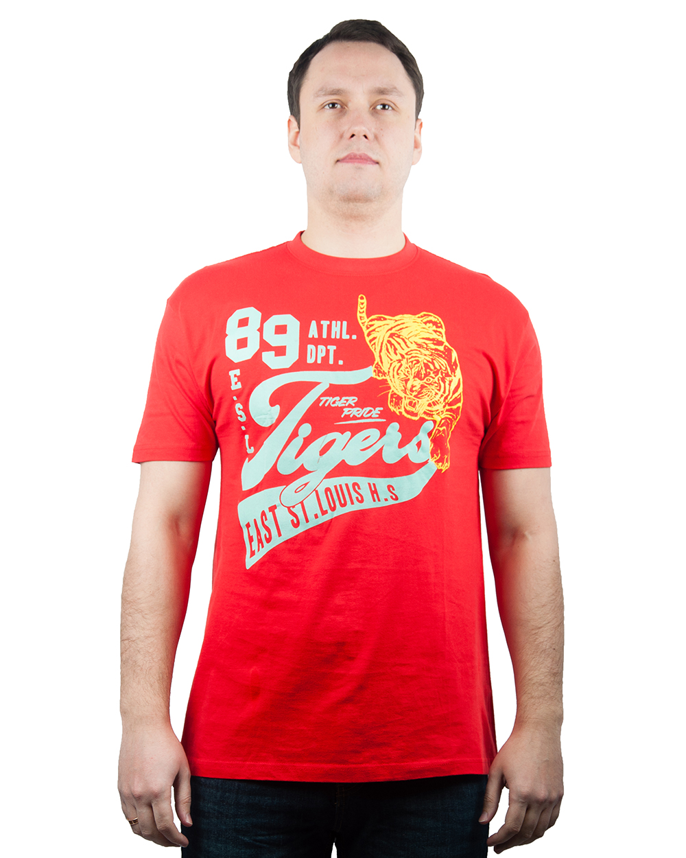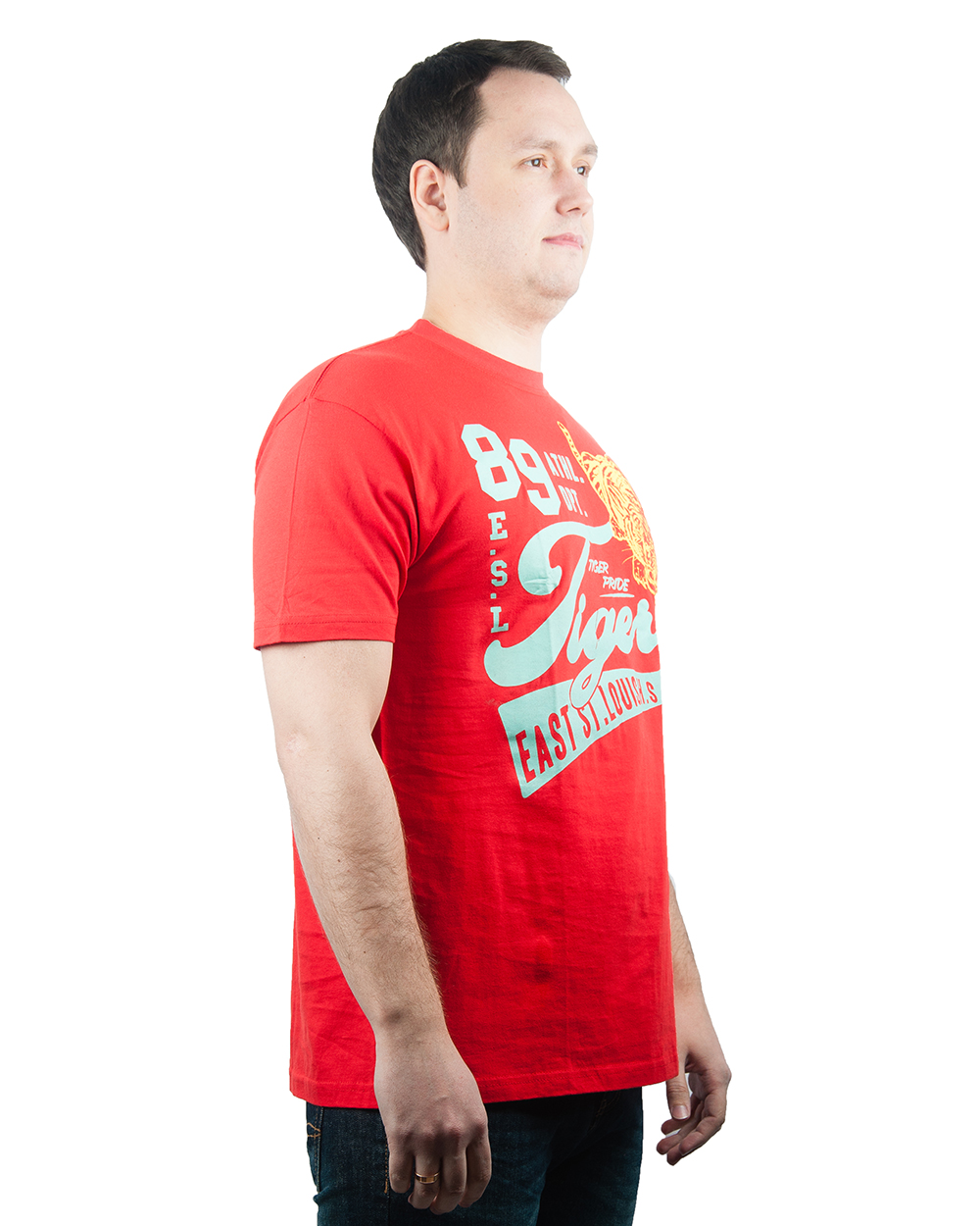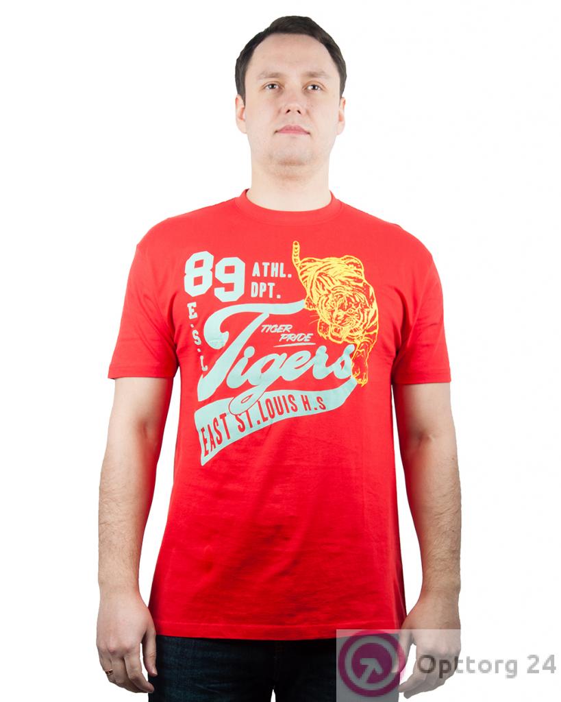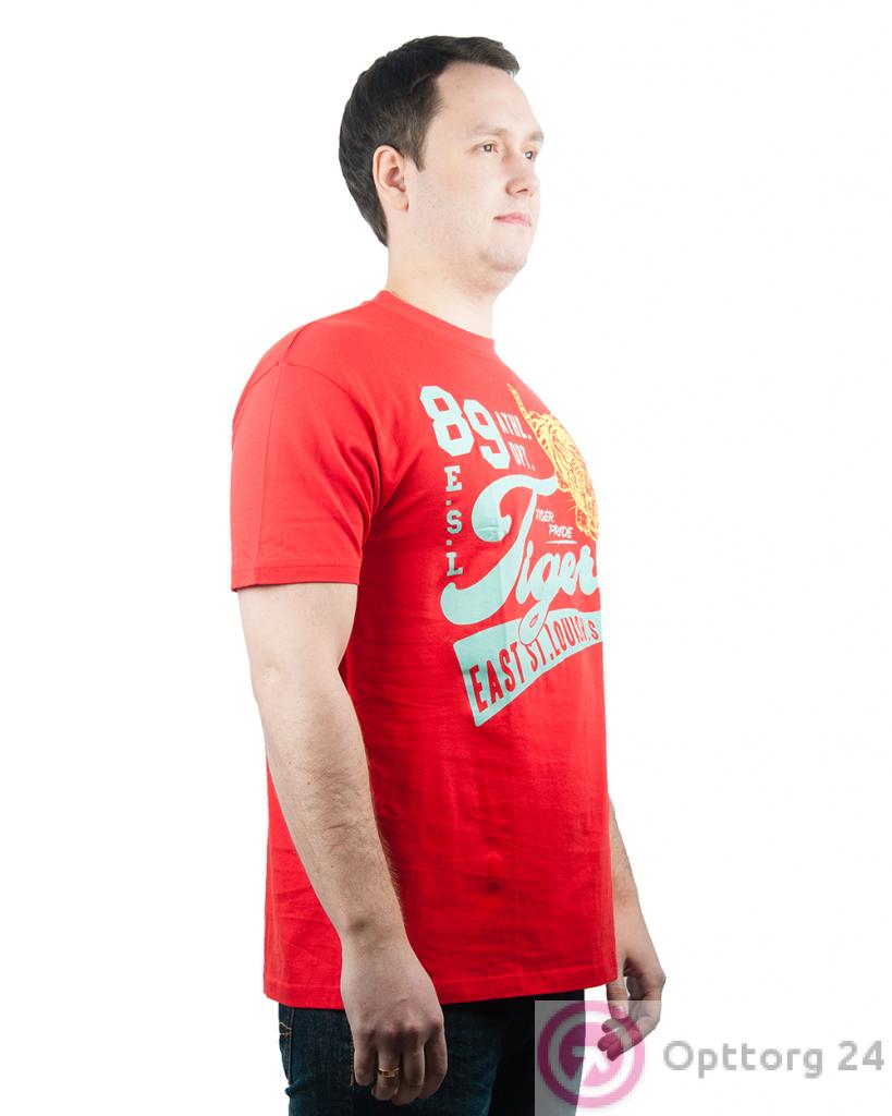 Футболка мужская ярко красного цвета с рисунком тигр оптом