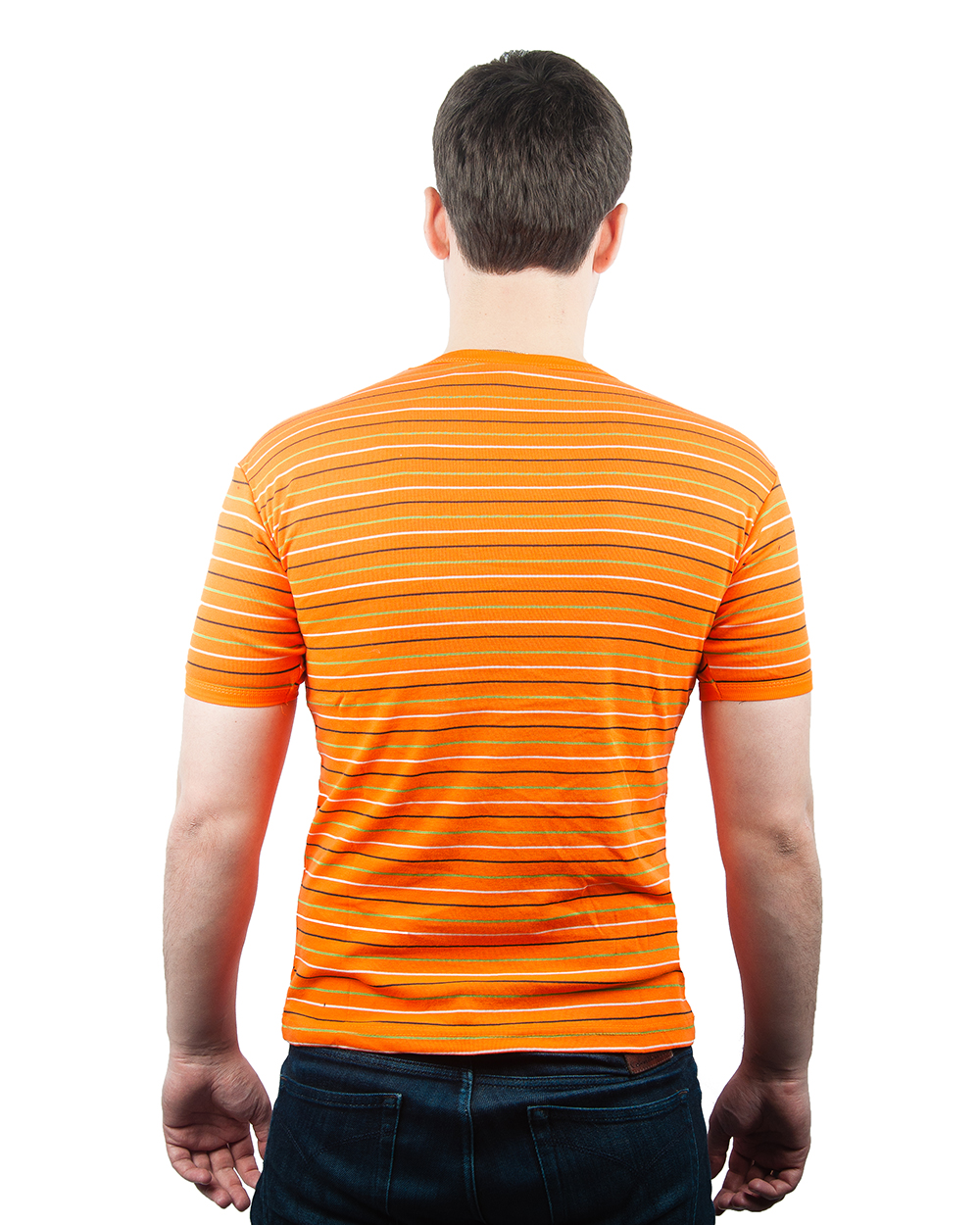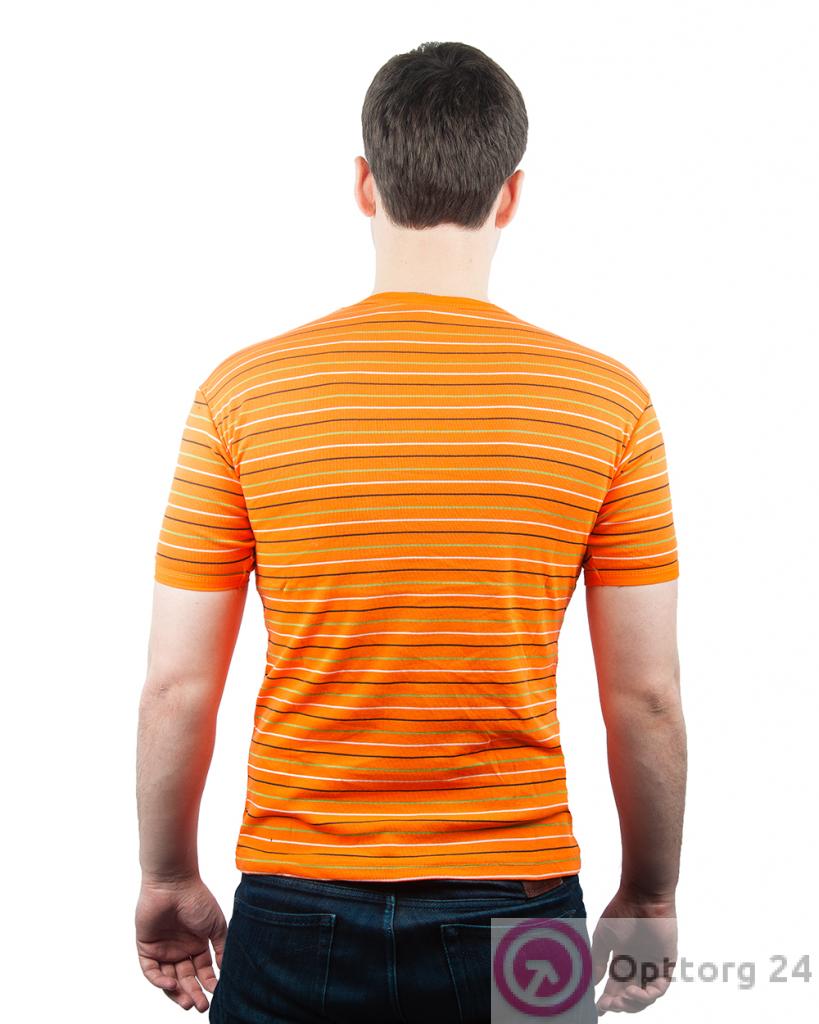 Футболка мужская ярко-оранжевая в полоску оптом