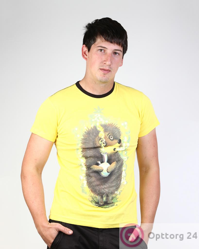 Футболка мужская желтая с принтом "Ежик в тумане" оптом