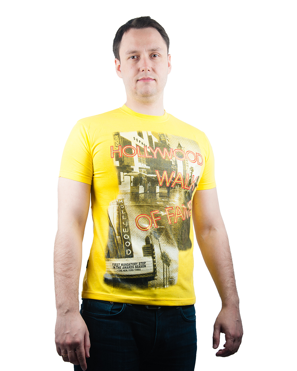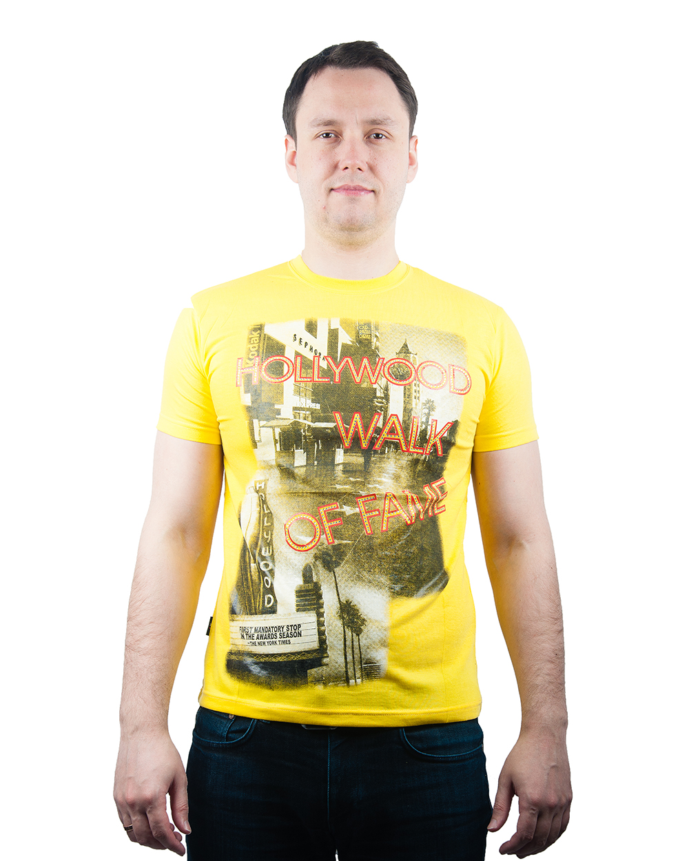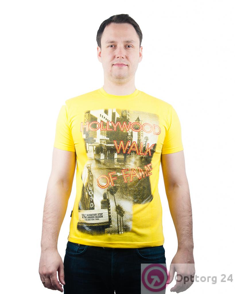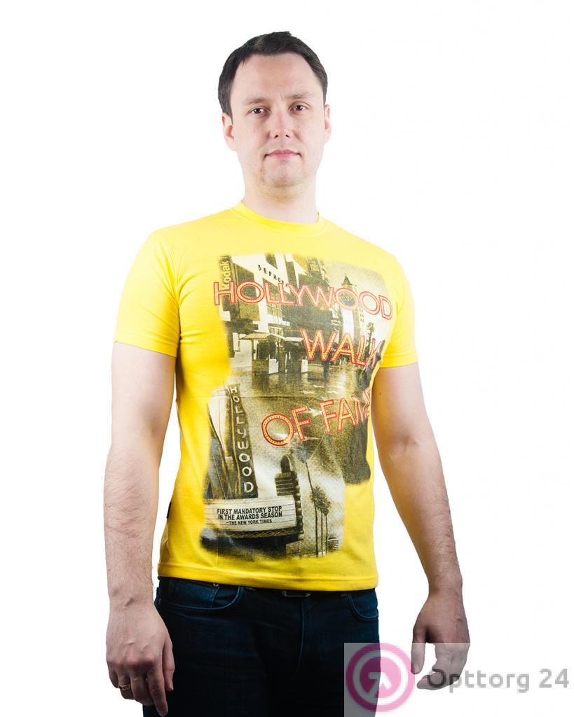 Футболка мужская желтая с принтом "Hollywood walk" оптом