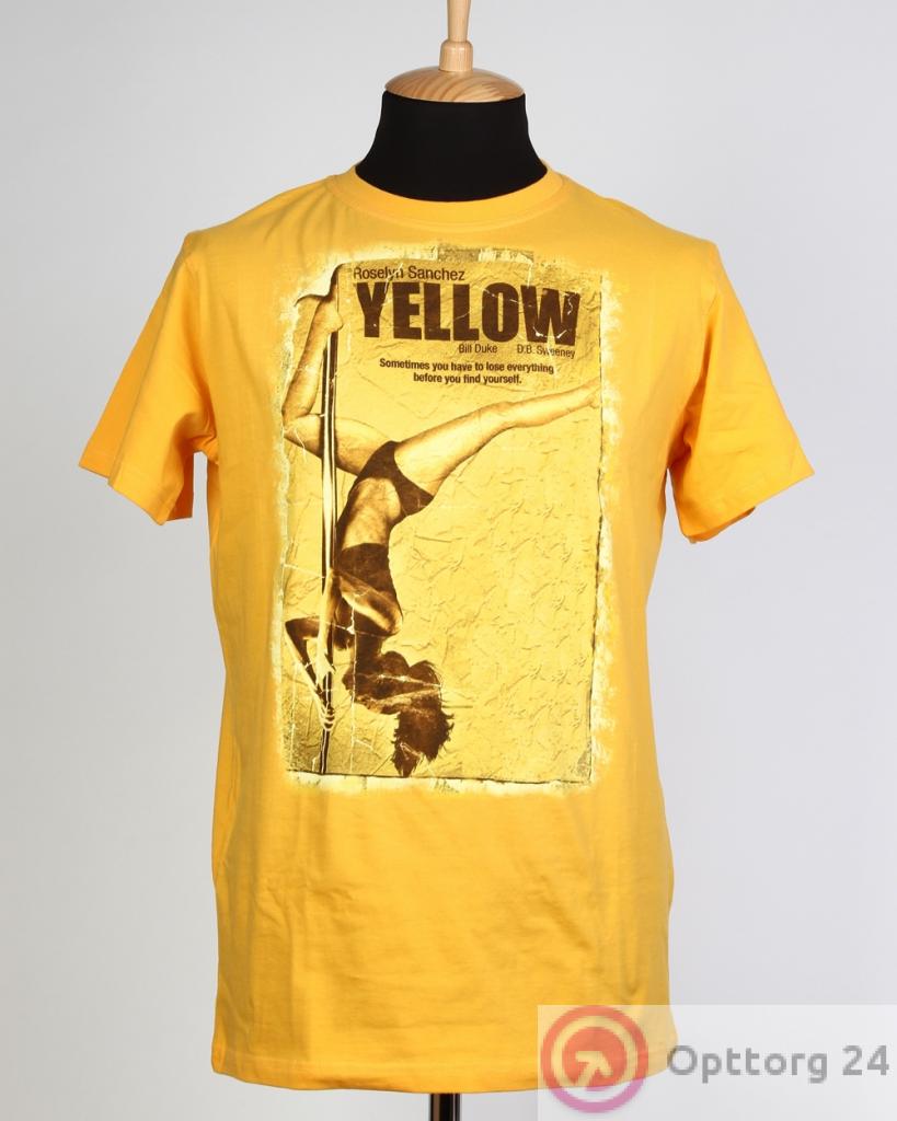 Футболка мужская желтого цвета с принтом оптом