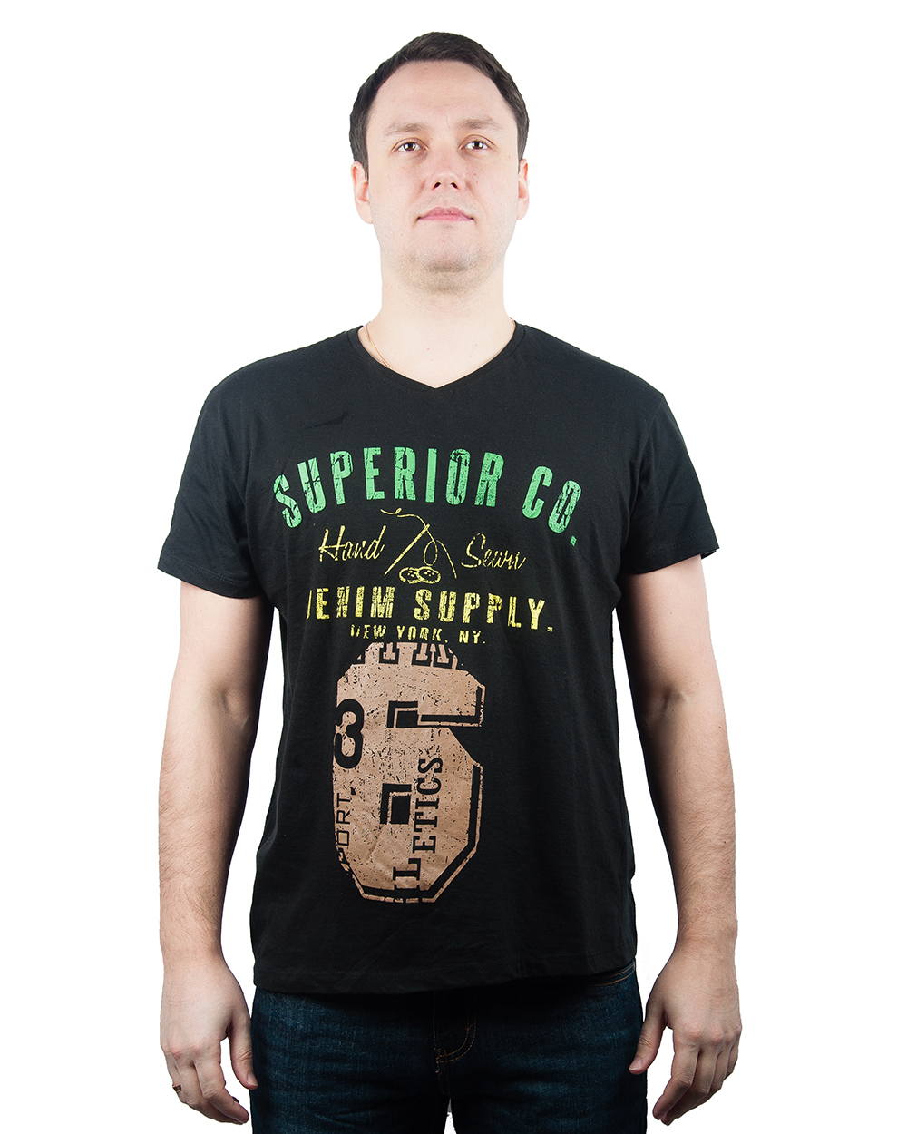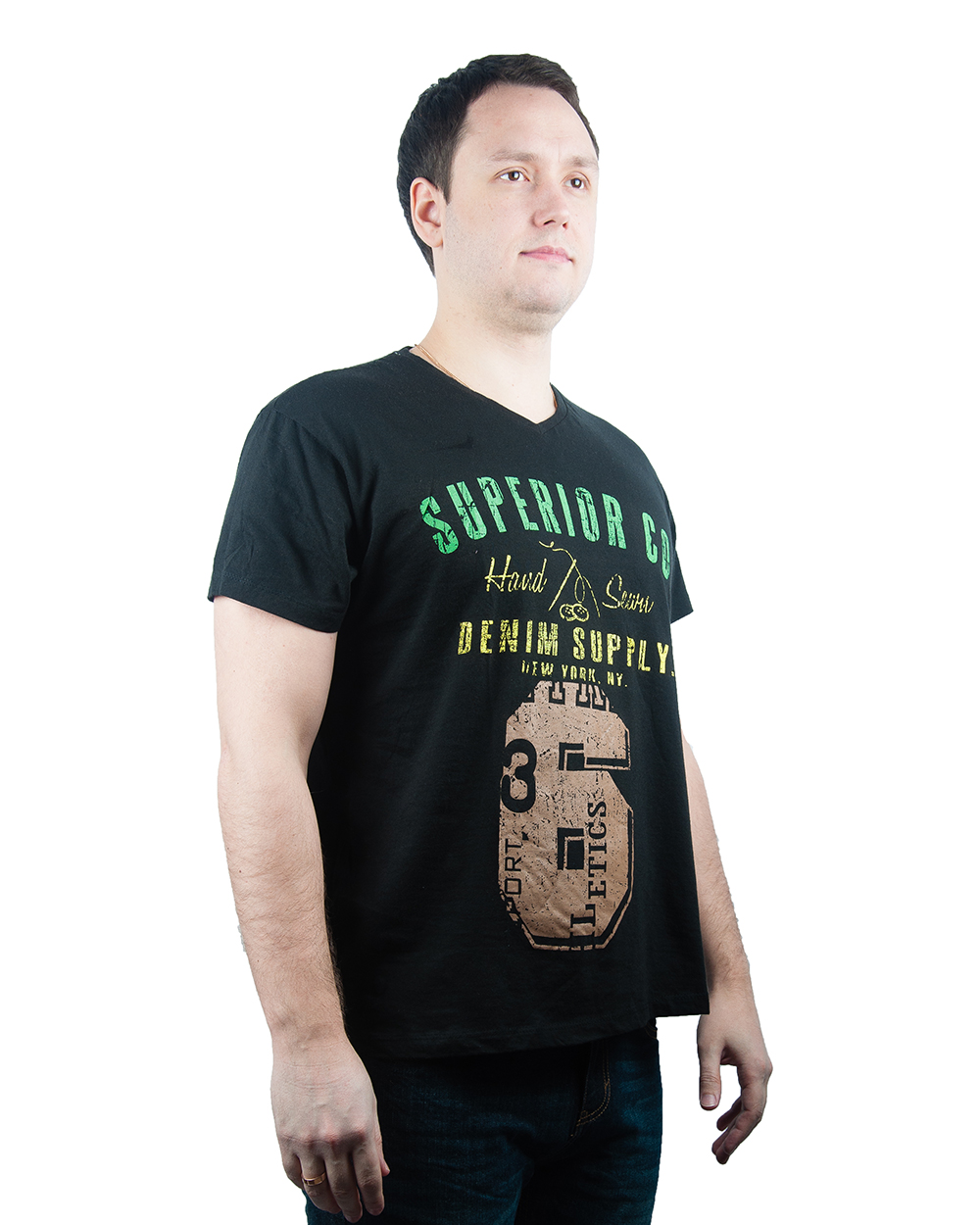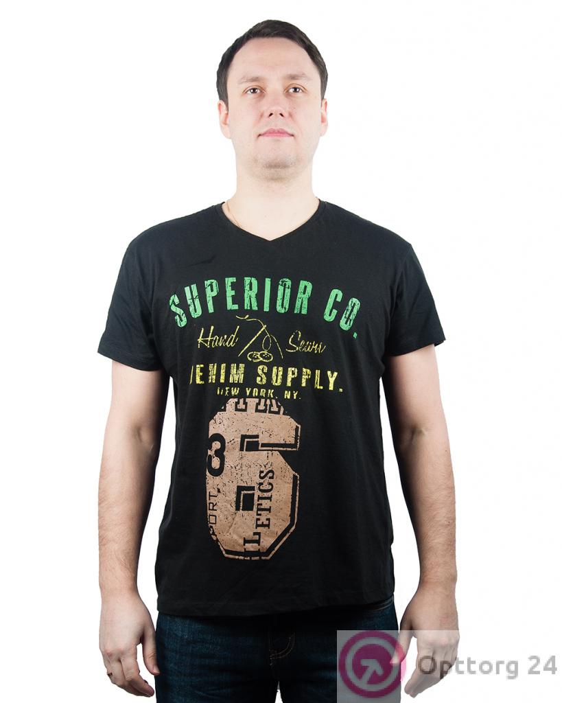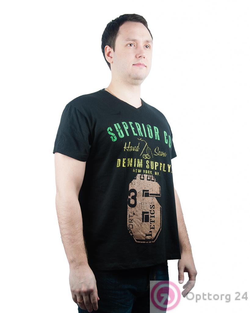 Футболка мужскаяс V-вырезом и принтом "Superior co" черная оптом