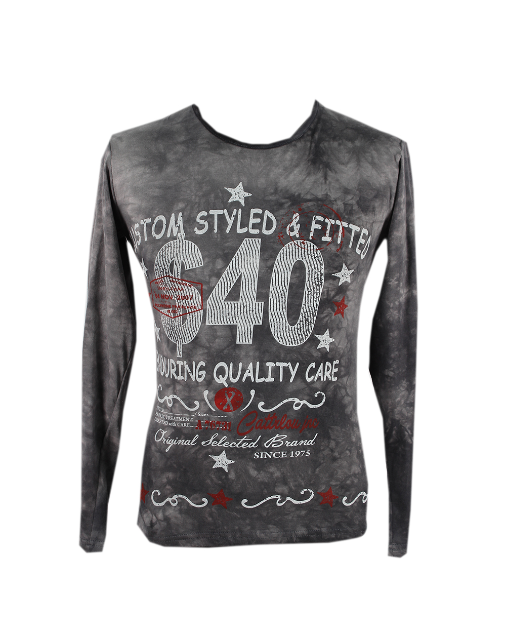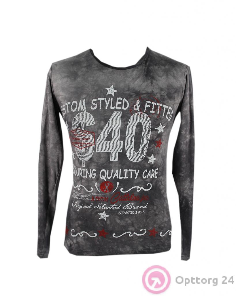 Мужская футболка серого цвета. Модель имеет длинные рукава и облегающий крой.
