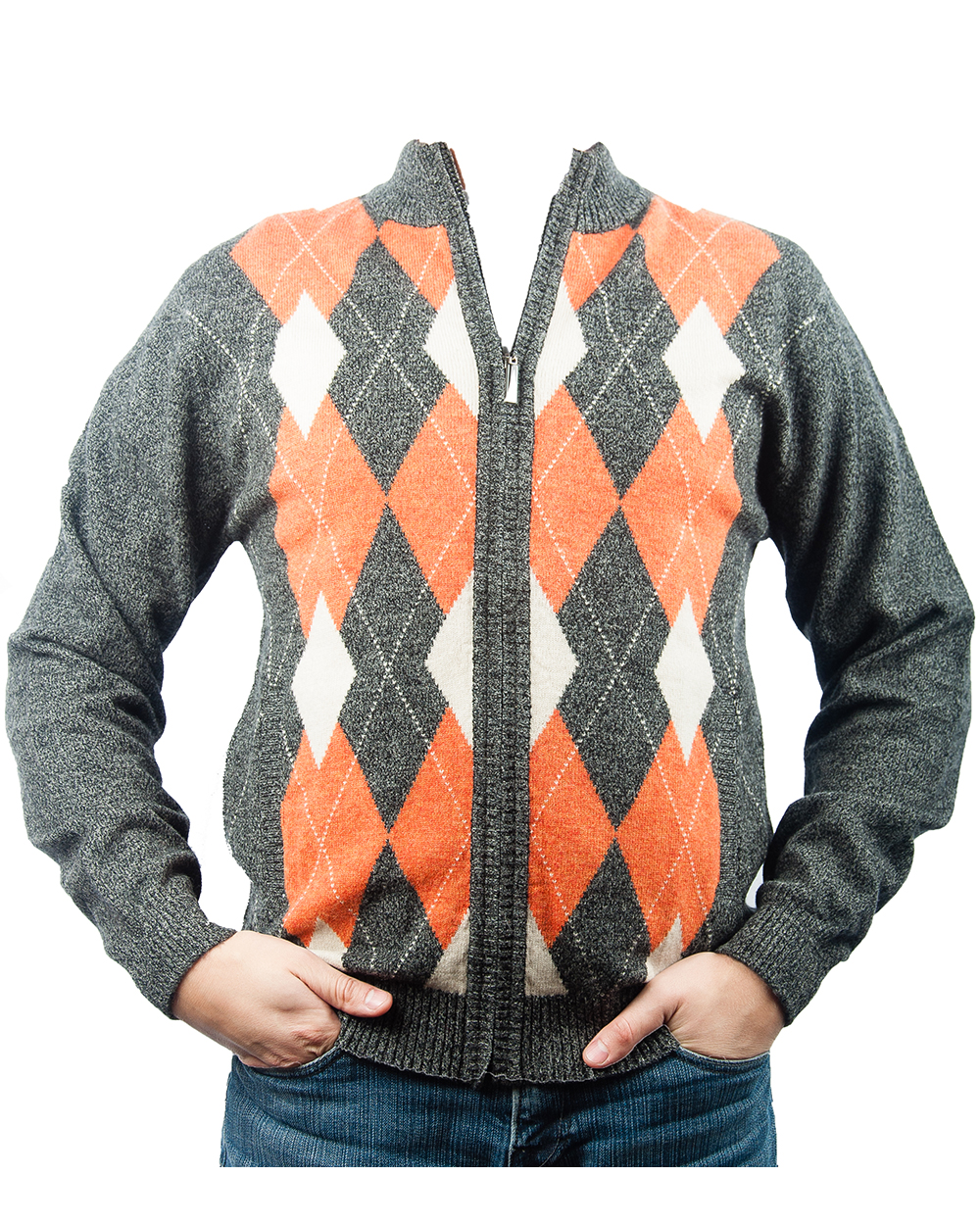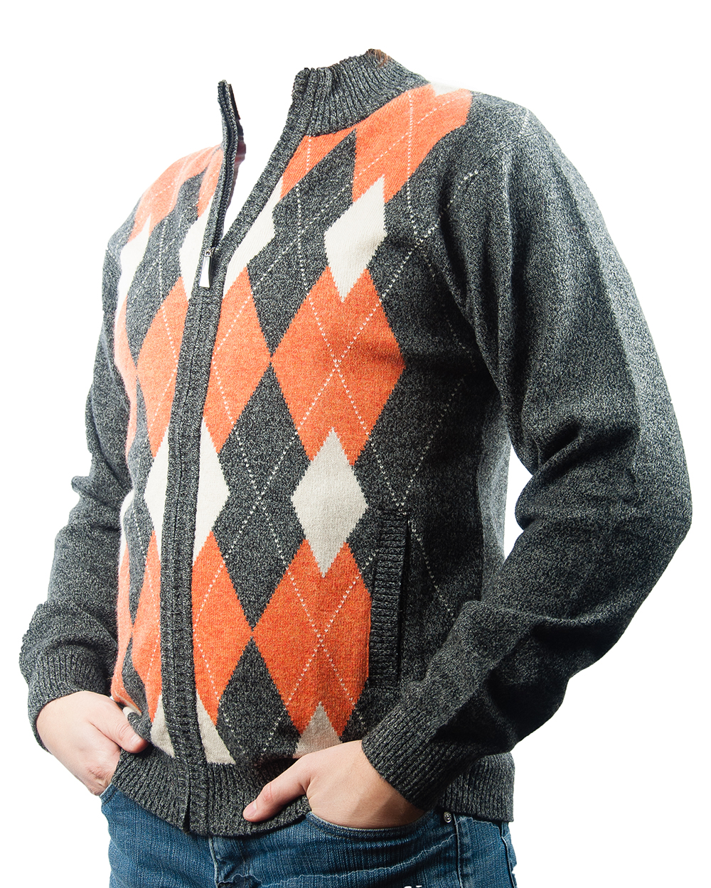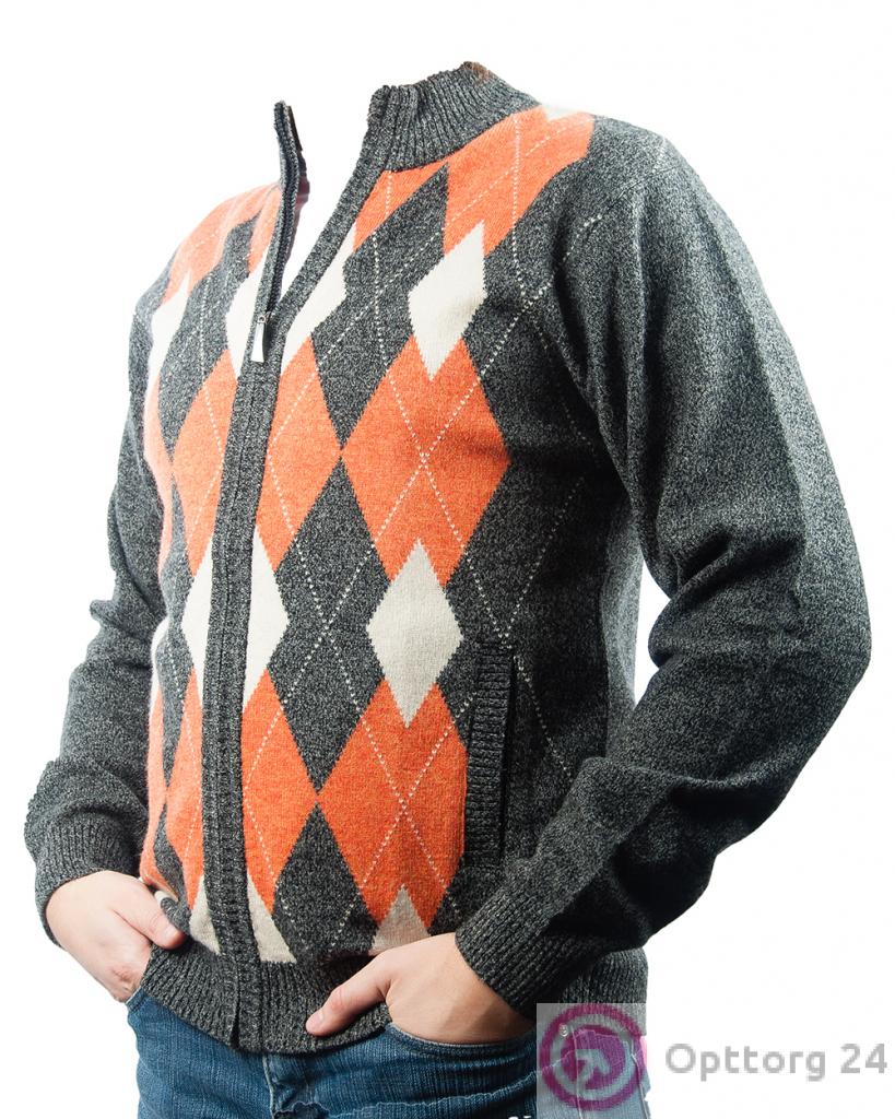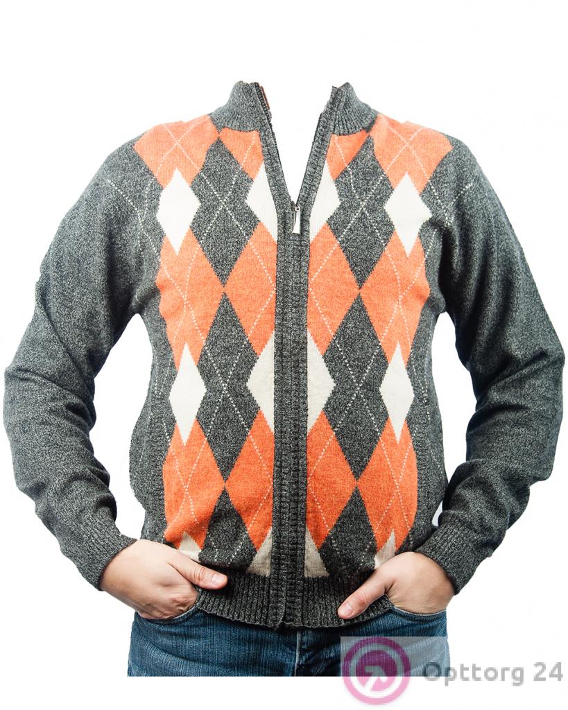 Кардиган мужской серый с оранжевым ромбом на молнии оптом