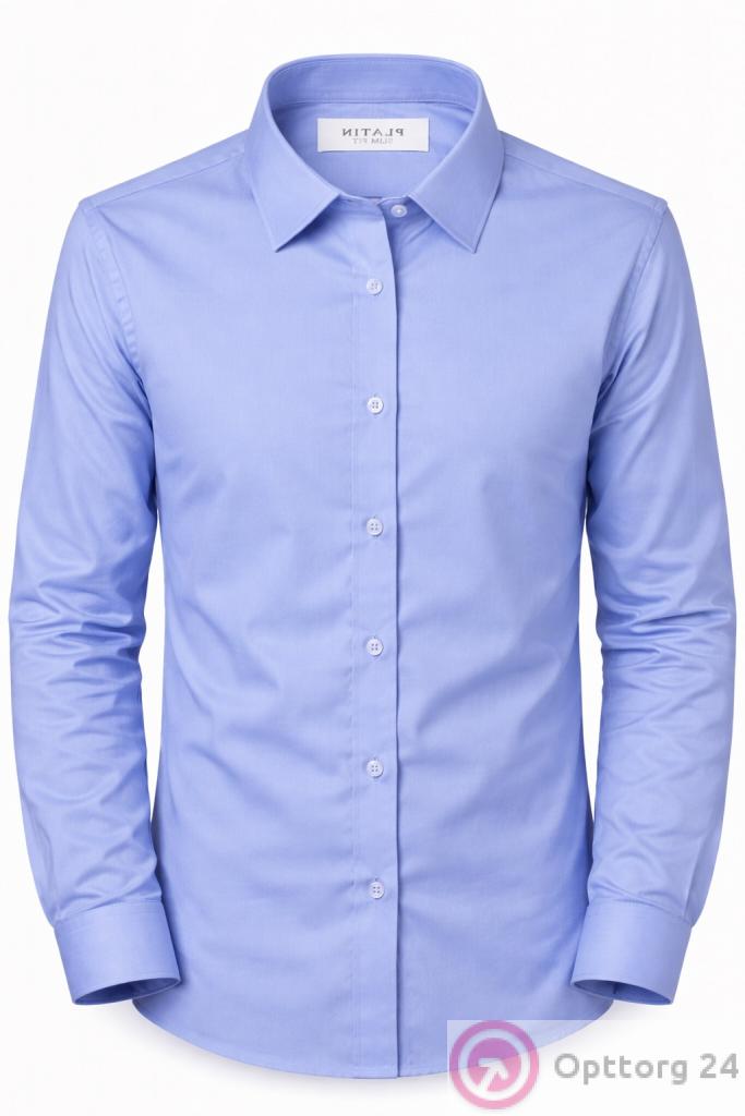 Классическая мужская рубашка голубая приталенная Platin оптом