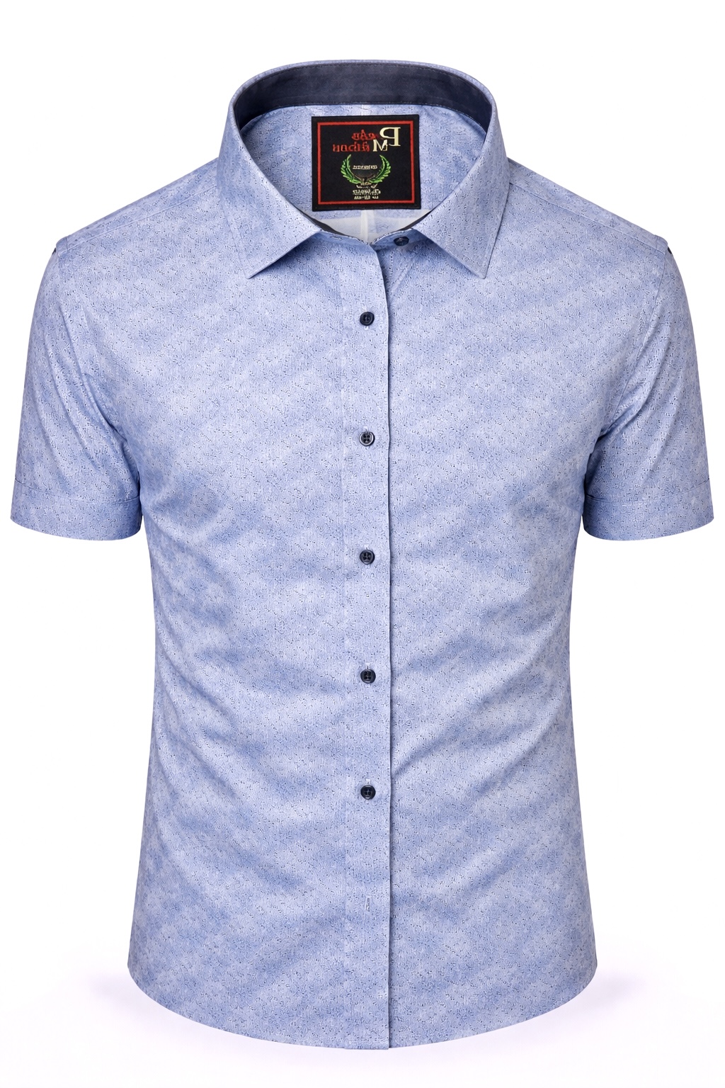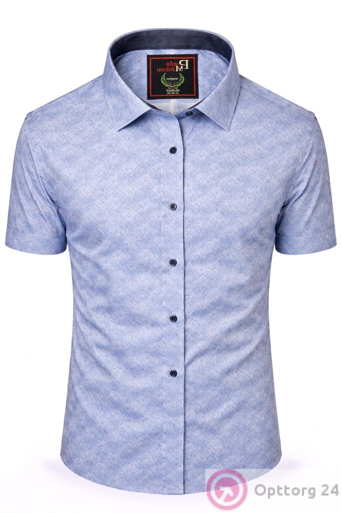 Описание: Рубашка мужская классическая Paolo Maldini, прямого кроя, из хлопка, с коротким рукавом, мягкая приятная ткань, нежно голубого цвета с рисунком, на кнопках.