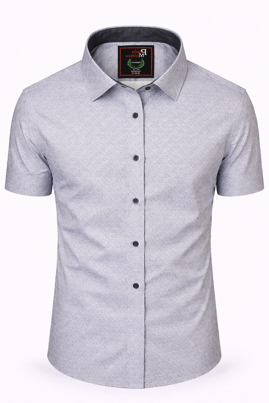 Описание: Рубашка мужская классическая Paolo Maldini, с коротким рукавом, на кнопках, идеально подойдет к шортам, джинсам и классическим брюкам, прямого кроя, из хлопка, серая с рисунком.