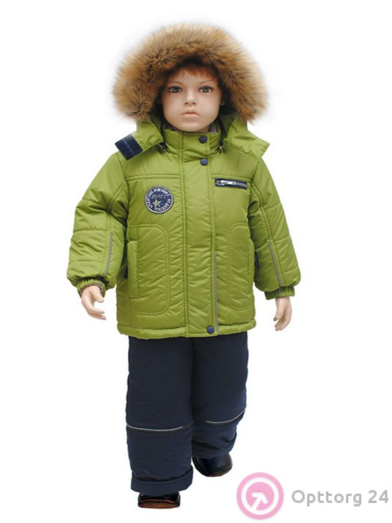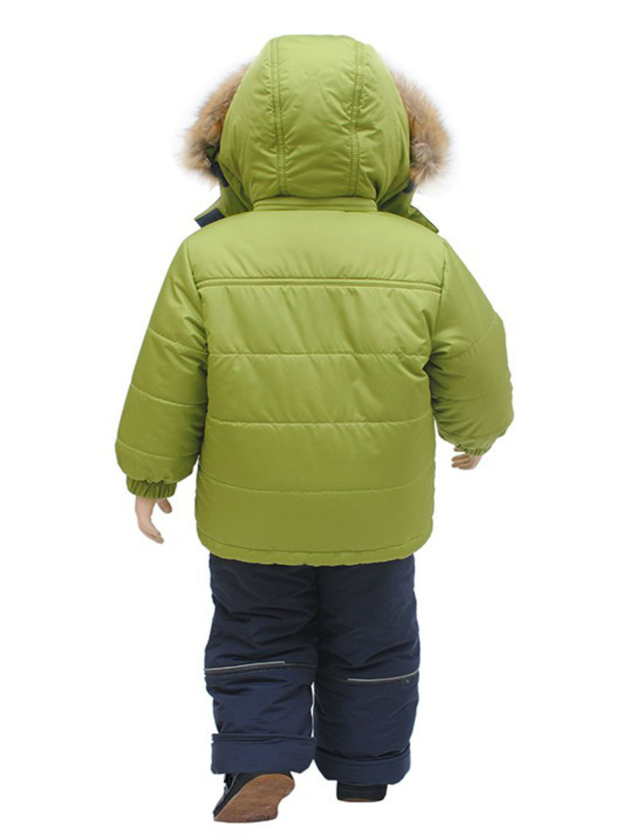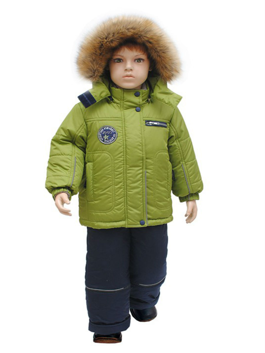 Костюм для мальчика, в комплект входит куртка, которая оснащена съемной меховой подстежкой и напульсниками, а также полукомбинезон с напульсниками и регулируемыми бретелями. На капюшоне мех, по бокам карманы, слева на груди - карман на молнии.