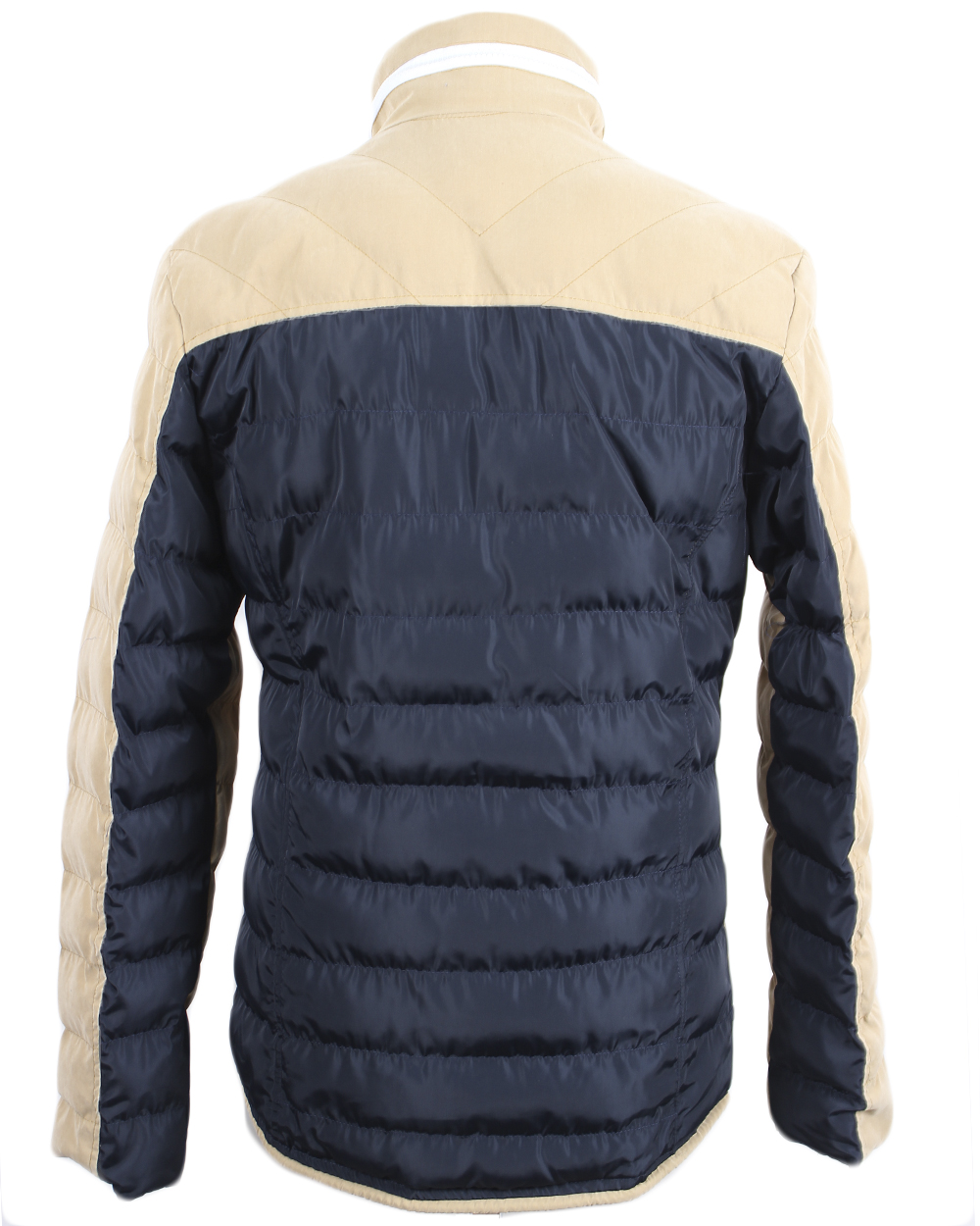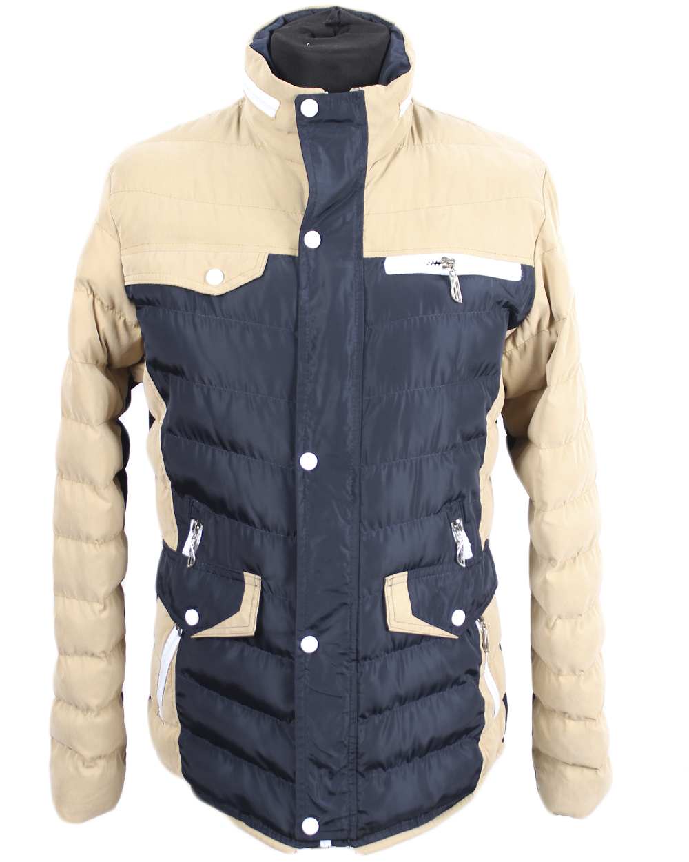 Куртка мужская на синтепоне бежево-синего цвета с большим колдичеством карманов с застёжками.