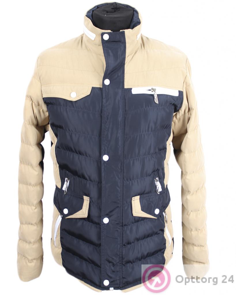 Куртка мужская бежево-синего цвета с карманами на кнопках оптом