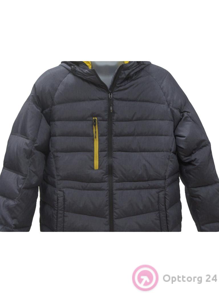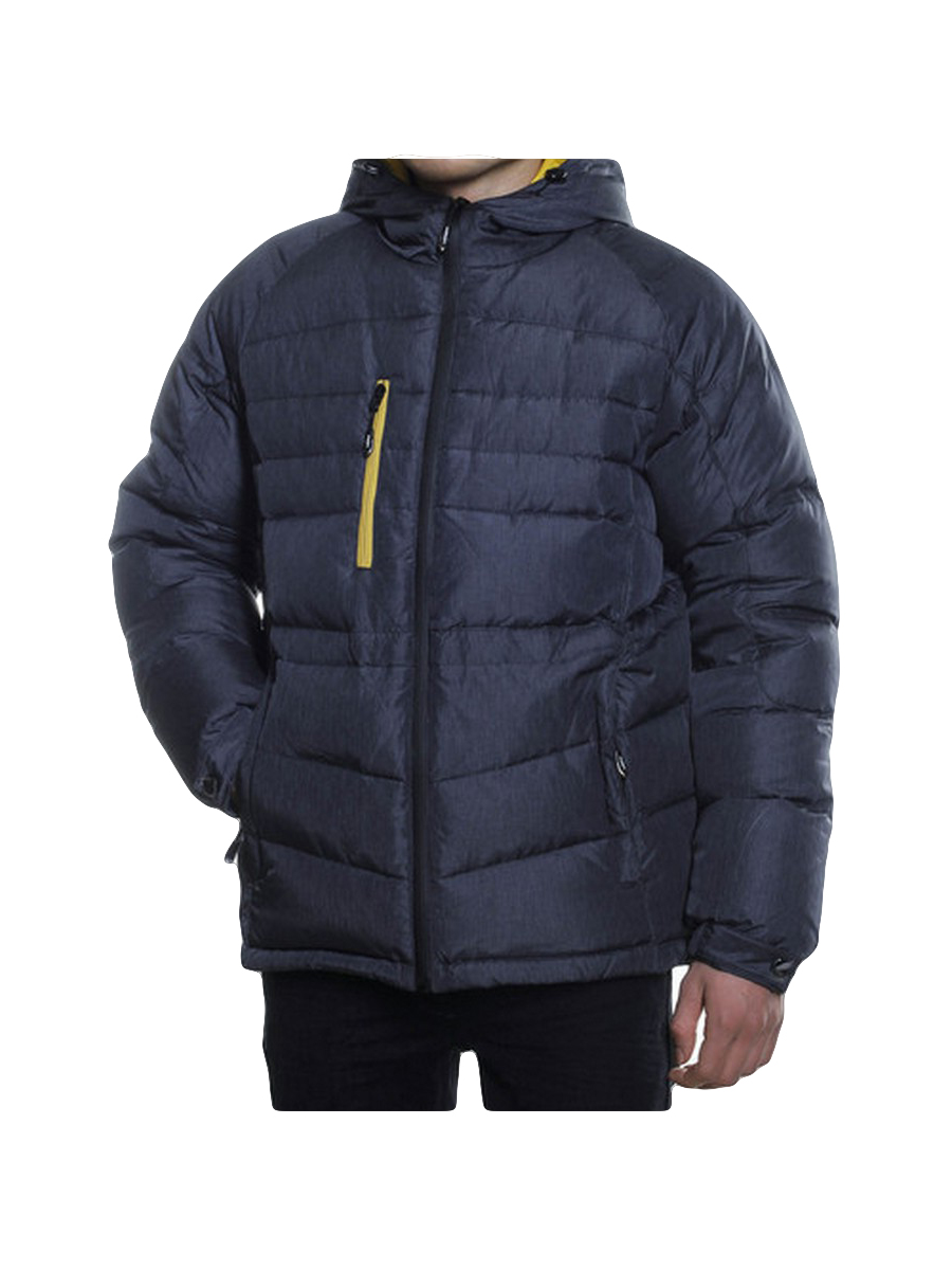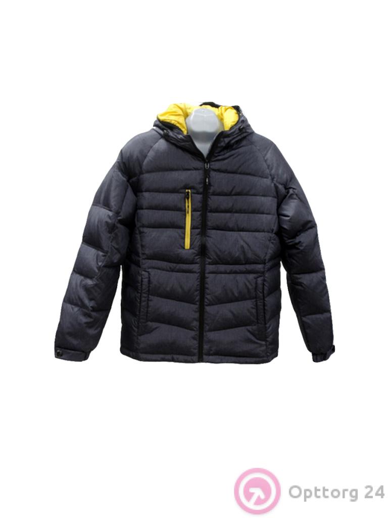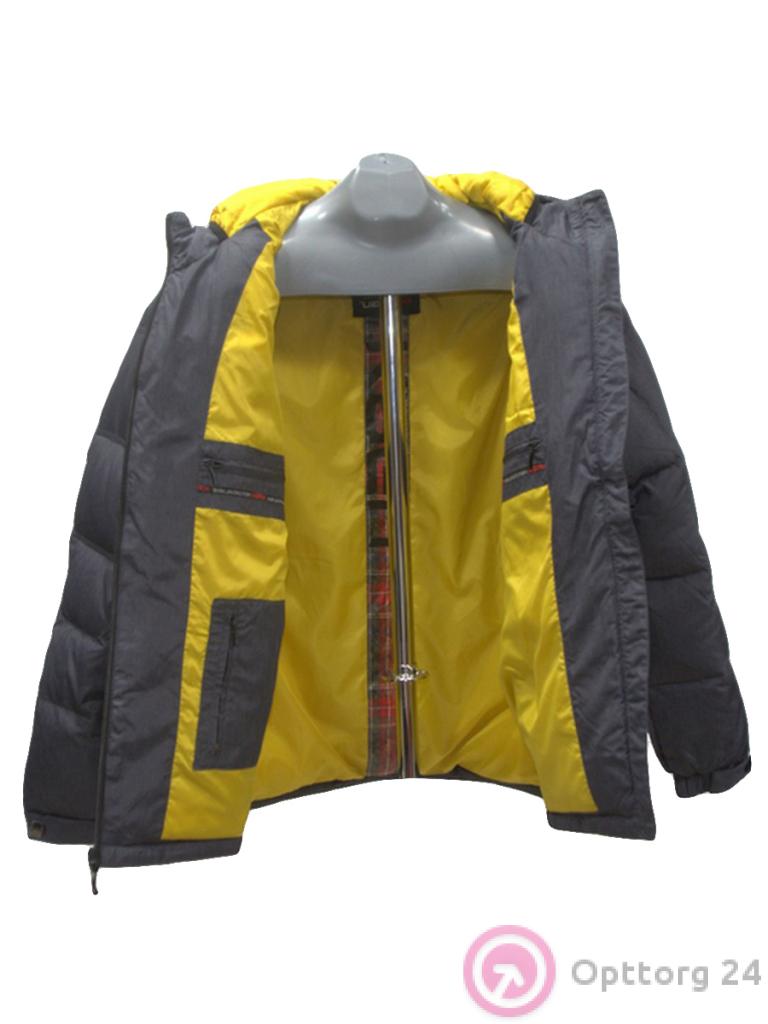 Зимняя мужская куртка на пуху выполнена из специального непромокаемого материала. Подкладка изделия желтого цвета. Карман без меха.