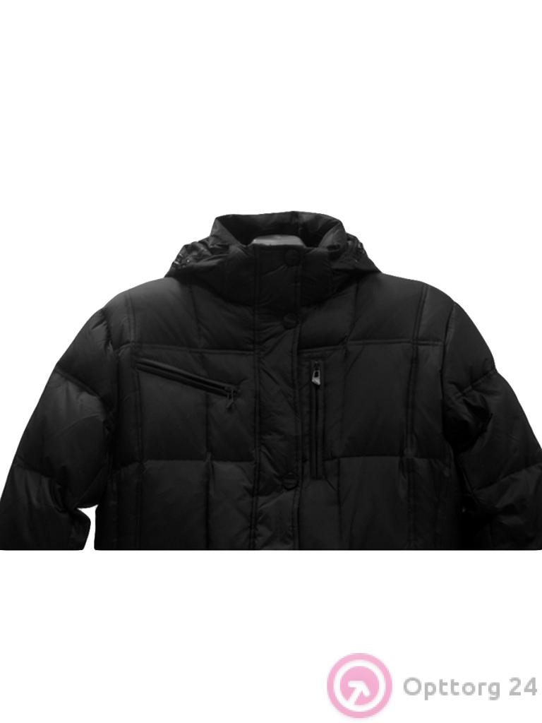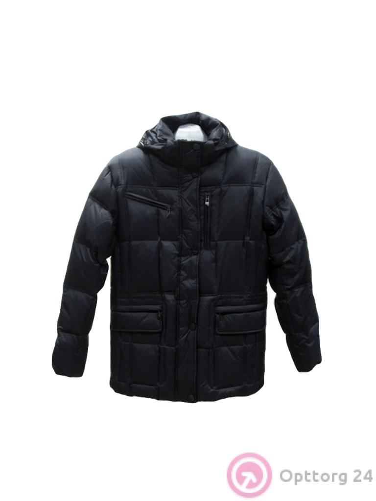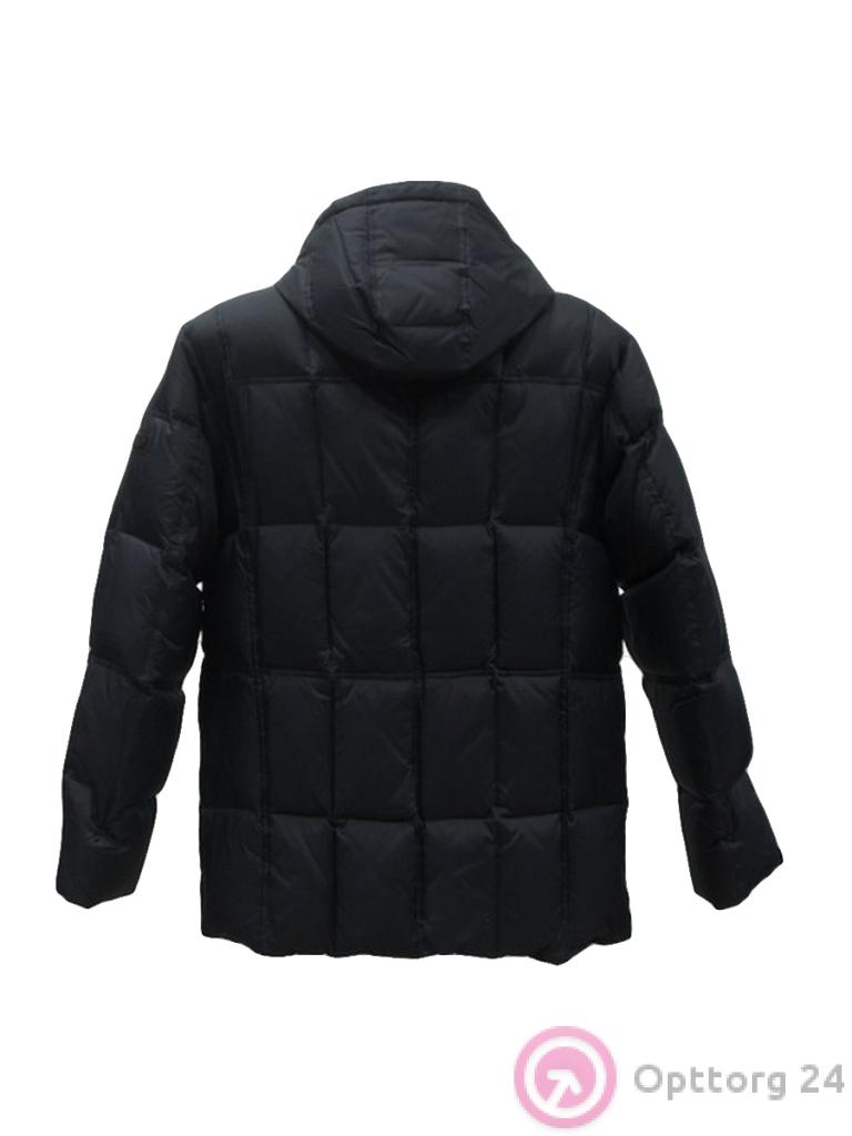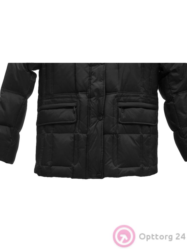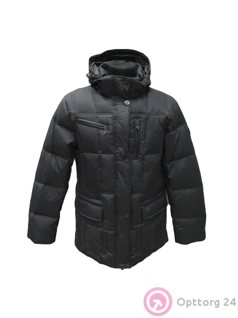 Зимняя черная куртка на пуху для мужчин с отстегивающимся капюшоном. Изделие имеет большое количество карманов.