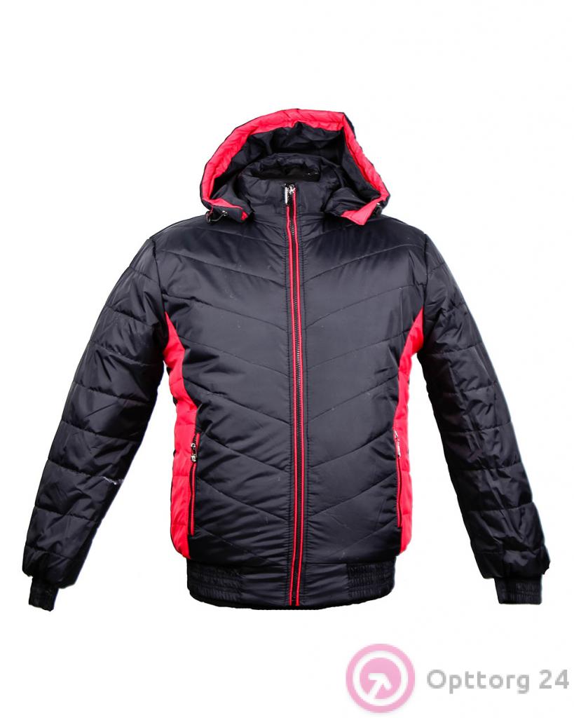 Куртка мужская черная с красными вставками и капюшоном оптом