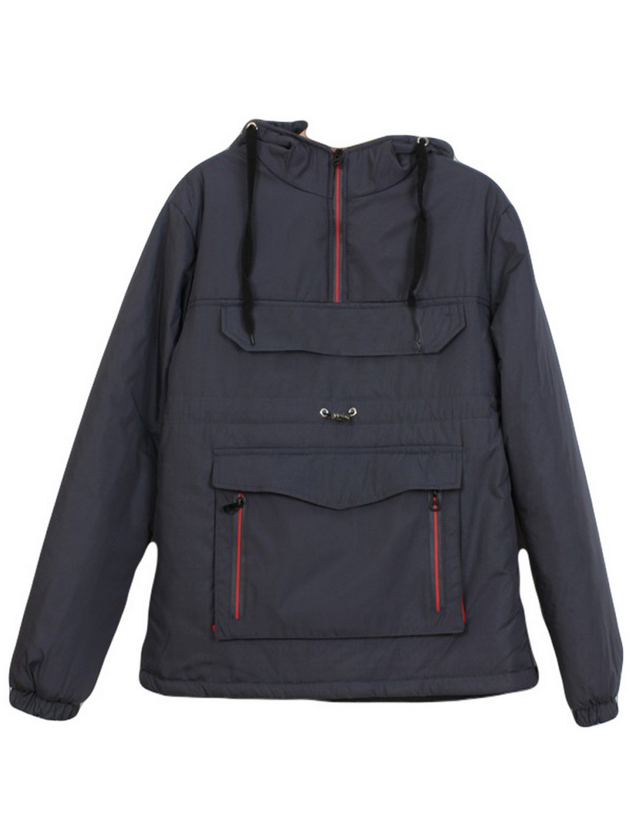 Мужская куртка демисезонная черного цвета стильного дизайна. Спереди изделия большой карман, вырез на молнии. Пояс модели и низ модели могут регулироваться.
