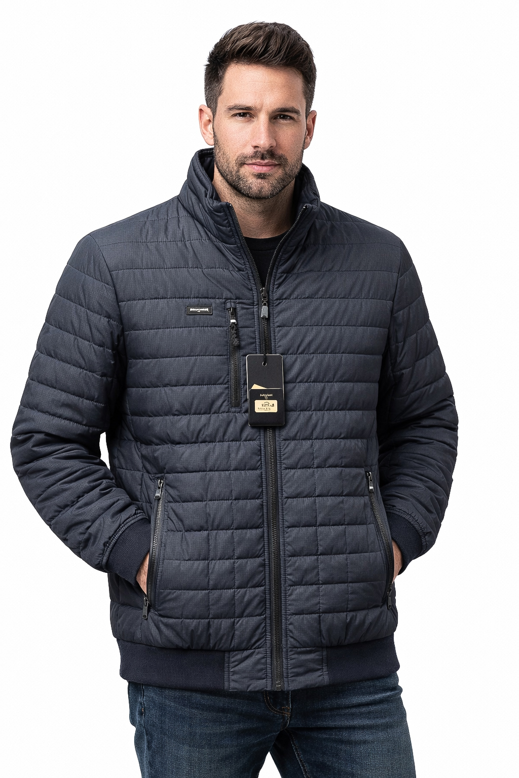Описание: Куртка мужская демисезонная однотонного цвета, стеганная. Воротник стоечка. Застегивается на молнии. Имеется три кармана на молнии. Манжеты рукавов регулируются на кнопке. Низ куртки выполнен на трикотажной резинке.