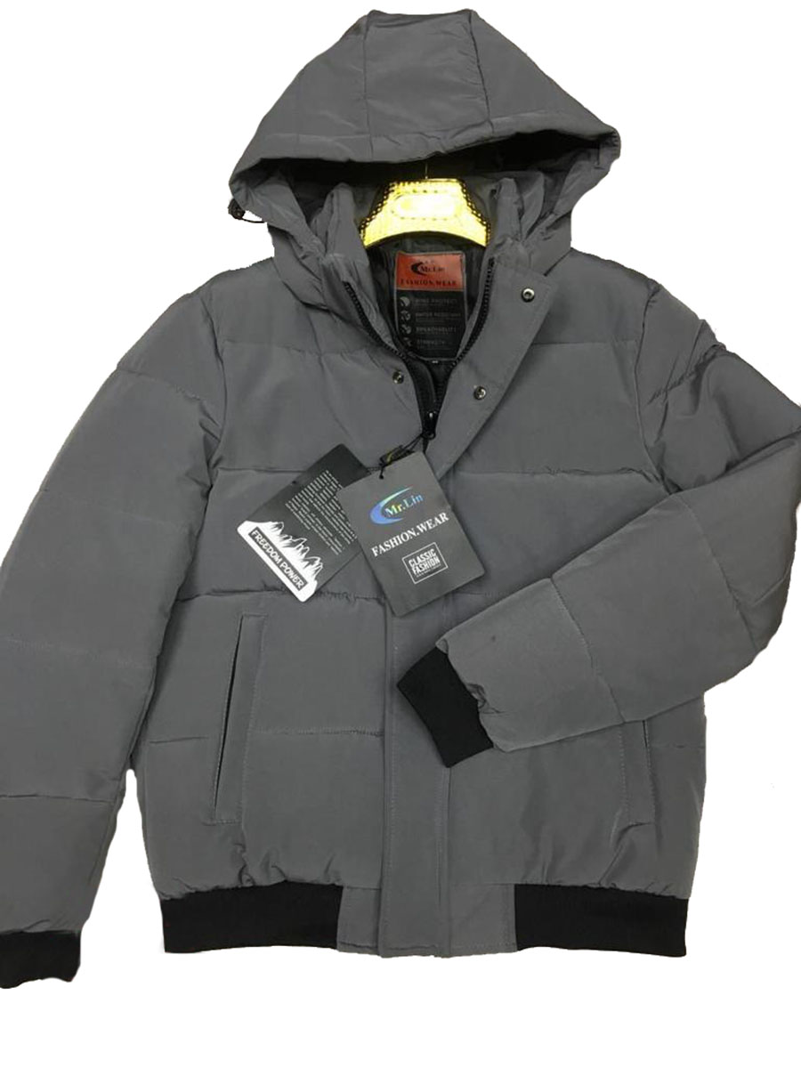 Описание: Куртка мужская демисезонная цвет серый. Застежка на молнии с ветрозащитной планкой на кнопках. Есть два кармана и капюшон. Высокий воротник. Манжеты рукавов и низ куртки на широкой трикотажной резинке черного цвета.