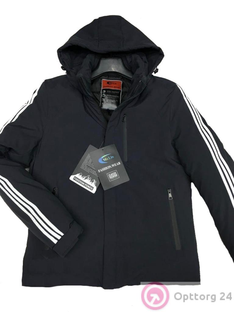 Описание: Куртка мужская демисезонная цвет темно-серый, на рукавах три белых полоски. Застежка на молнии с ветрозащитной планкой на кнопках. Есть два кармана на молнии и капюшон. Высокий воротник. Манжеты рукавов регулируются на липучке.