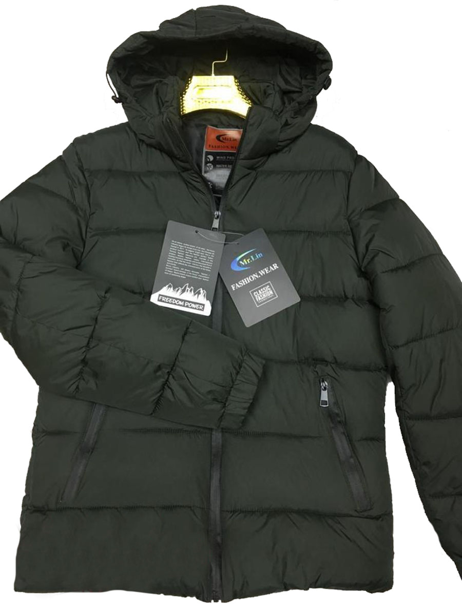 Описание: Куртка мужская демисезонная цвет темно-зеленый. Застежка на молнии. Есть два кармана на молнии и капюшон. Высокий воротник. Манжеты рукавов на широкой резинке.