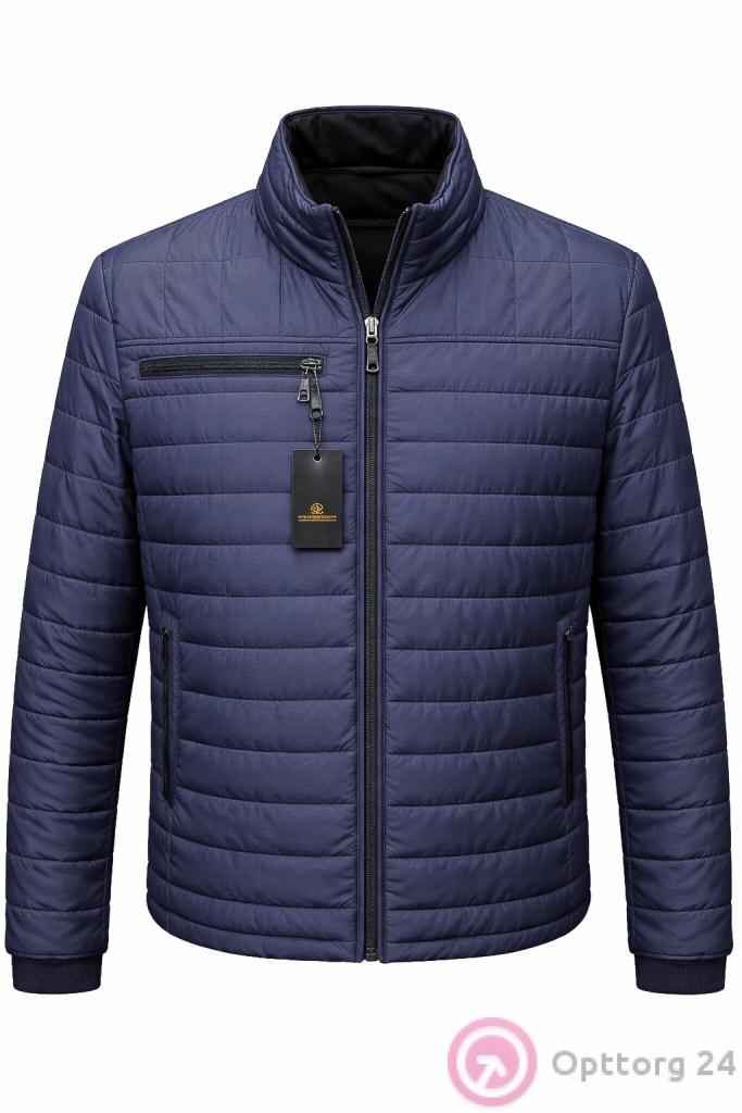Описание: Куртка мужская демисезонная MR.LIN, цвет темно-синий, простроченная. Застежка на молнии. Есть три кармана на молнии. Воротник стоечка.