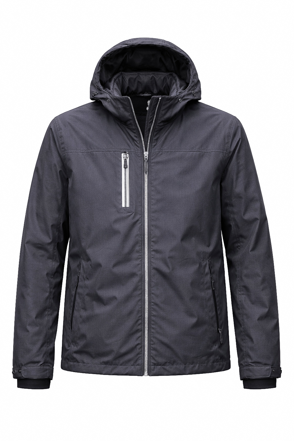 Описание: Куртка мужская демисезонная облегченная, однотонного цвета. Воротник стоечка. Есть капюшон. Застегивается на молнии. Имеется три кармана. Манжет рукавов с застежкой на кнопке.