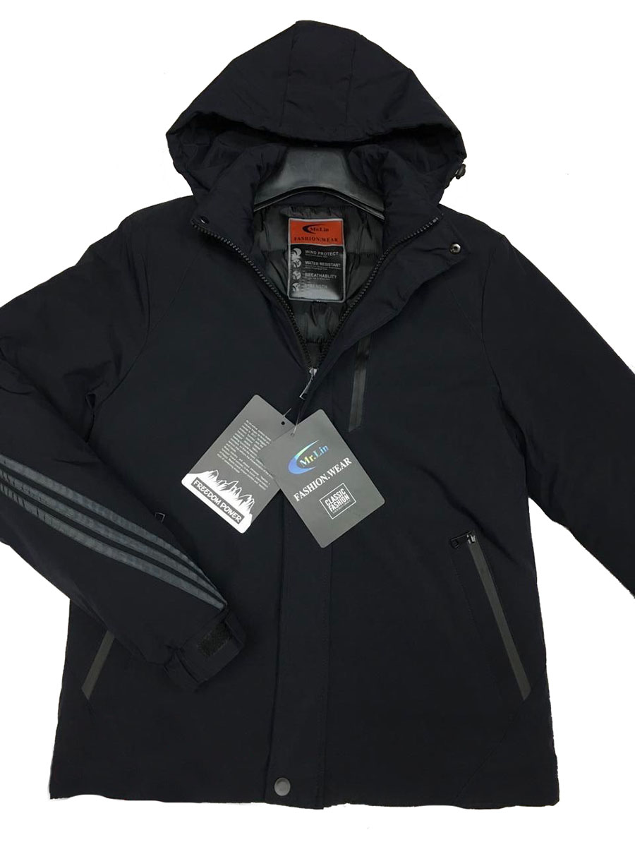 Описание: Куртка мужская демисезонная цвет темно-синий. Застежка на молнии с ветрозащитной планкой на кнопках. Есть три кармана на молнии и капюшон. Высокий воротник. Манжеты рукавов на резинке и регулируются на липучке.
