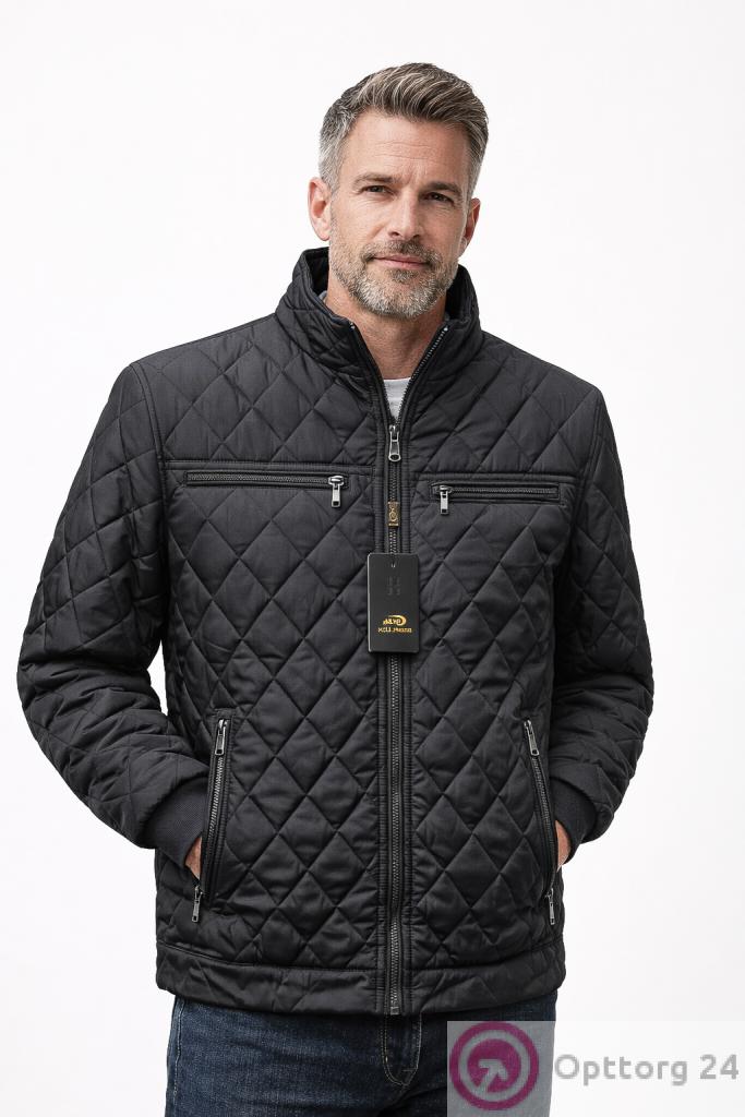 Описание: Куртка мужская демисезонная однотонного цвета, стеганная. Воротник стоечка. Застегивается на молнии. Имеется четыре кармана. Манжеты рукавов и низ куртки выполнены на трикотажной резинке.
