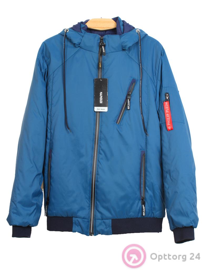 Куртка мужская демисезонная сине-голубого цвета с карманами на молнии оптом