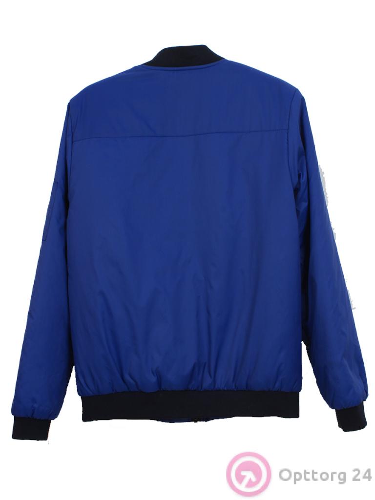 Куртка мужская демисезонная синего цвета с черными резинками на молнии оптом