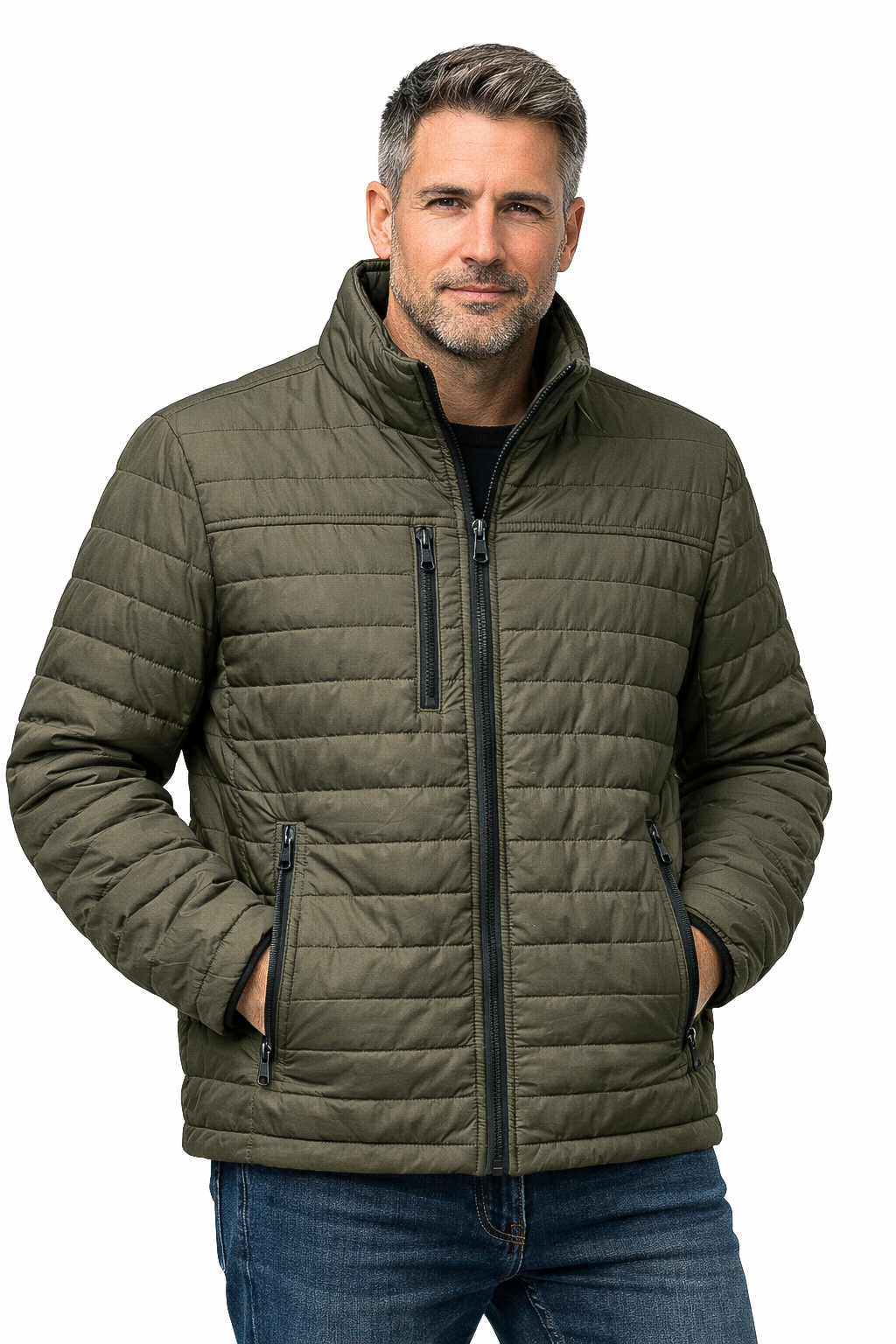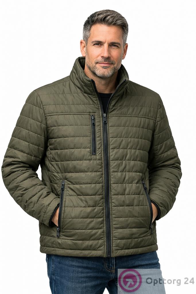 Описание: Куртка мужская демисезонная однотонного цвета, стеганная. Воротник стоечка. Застегивается на молнии. Имеется три кармана. Манжеты рукавов регулируются на кнопке.