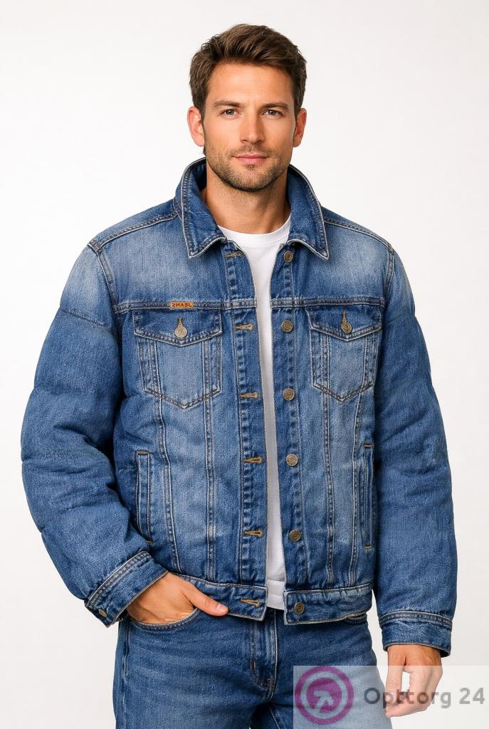 Описание: куртка мужская джинсовая с четырьмя карманами и воротом