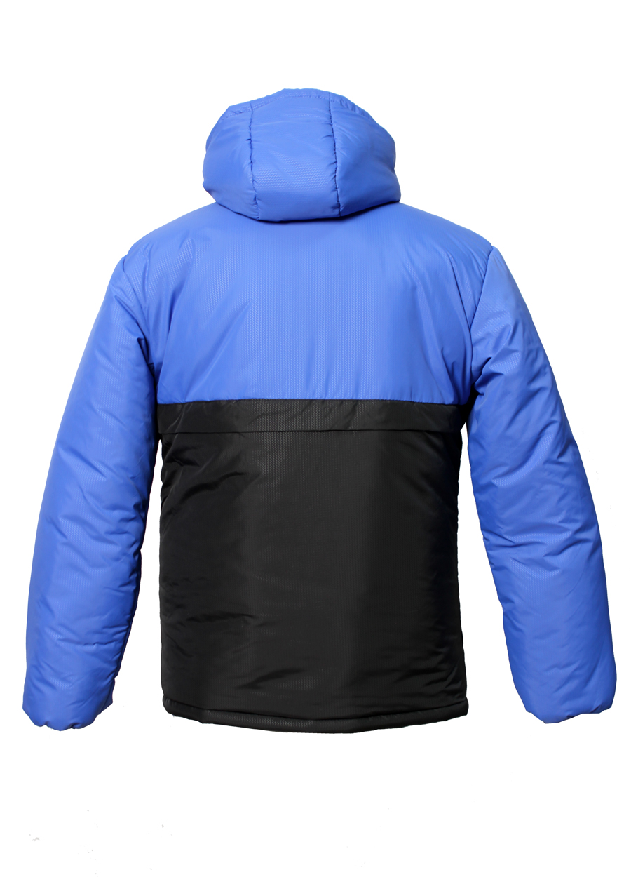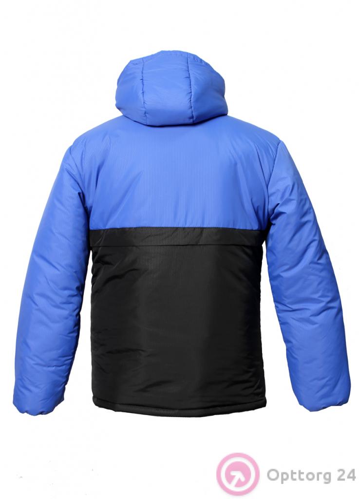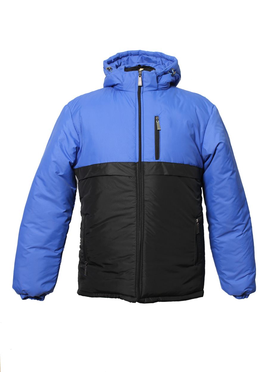 Мужская куртка двухцветная. Приятный на ощупь и при этом качественный и надежный материал, воротник-стойка, капюшон с затяжками - все это отлично помогает не замерзнуть в зимнюю непогоду, а карманы на застежках и резинки на рукавах делают куртку не только теплой, но также практичной и удобной