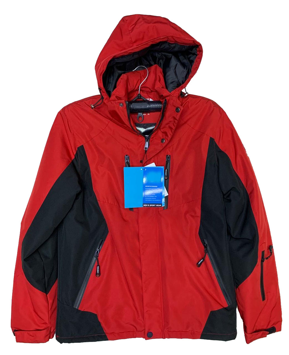 Описание: Куртка мужская на подкладке с капюшоном, красного цвета с черными вставками.