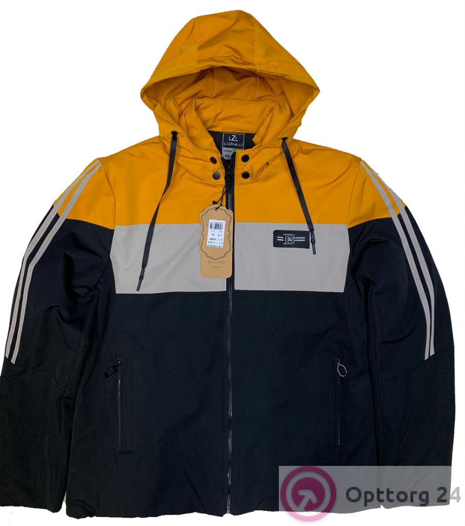 Описание: Куртка мужская на подкладке спортивного стиля черно-оранжевого цвета.