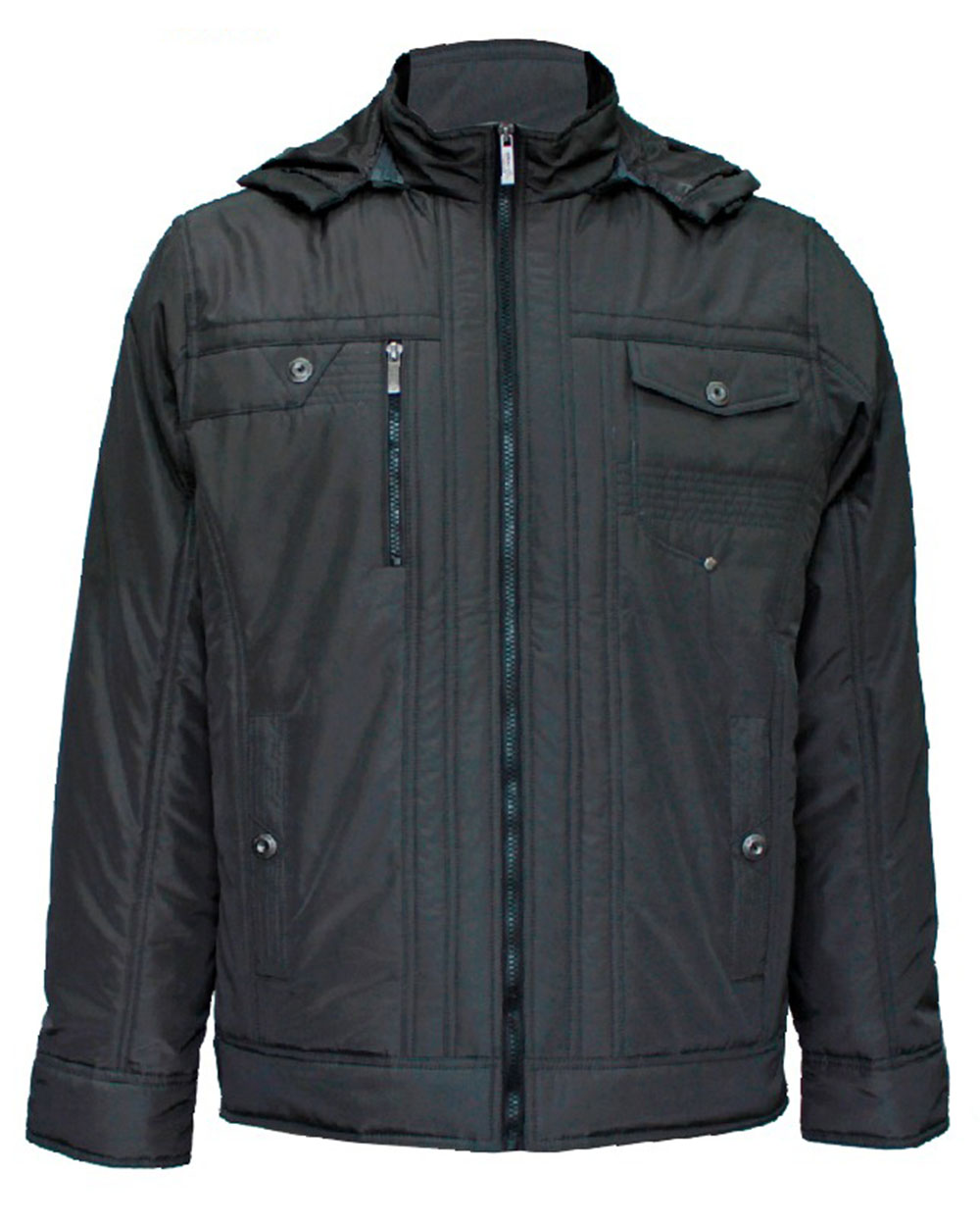 Стильная куртка с клепками понравится тем, кто привык сочетать стиль и комфорт. Куртка застегивается на удобную молнию и оснащена для удобства карманами. Вы можете выбрать куртку черного, серого или темного-синего цвета.