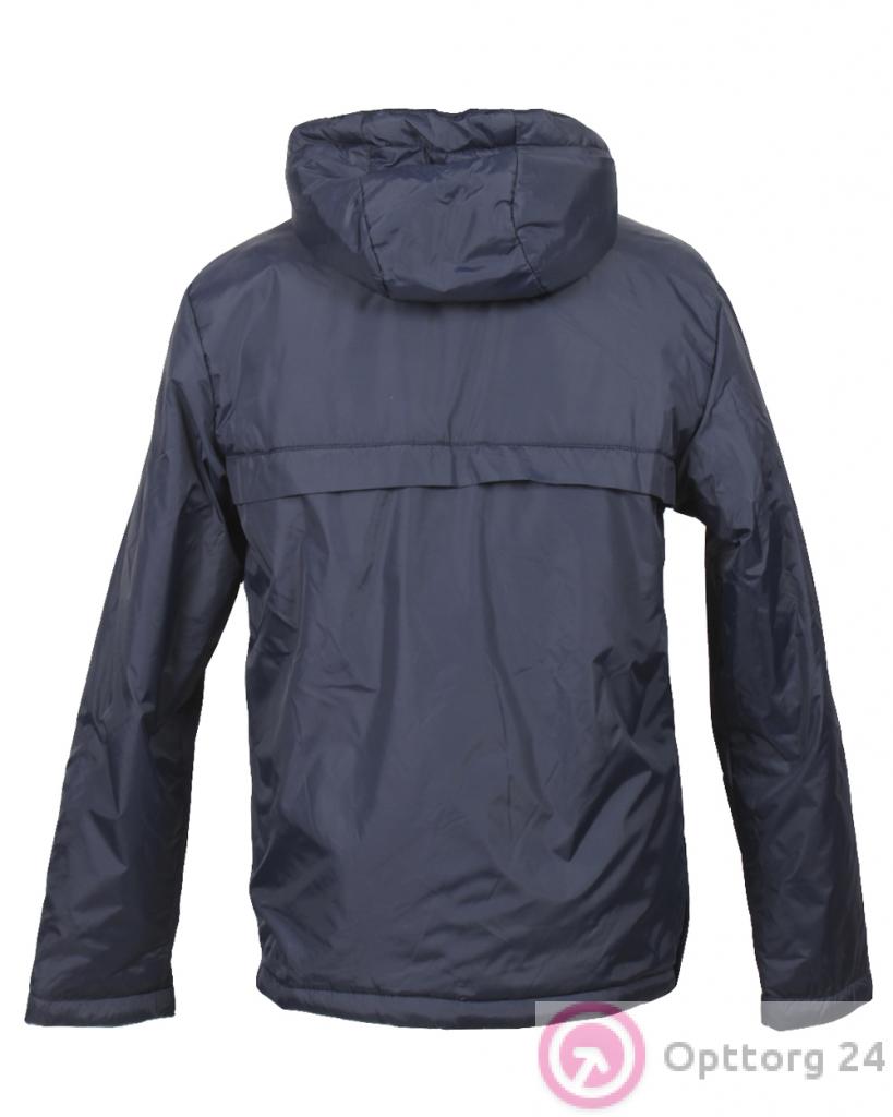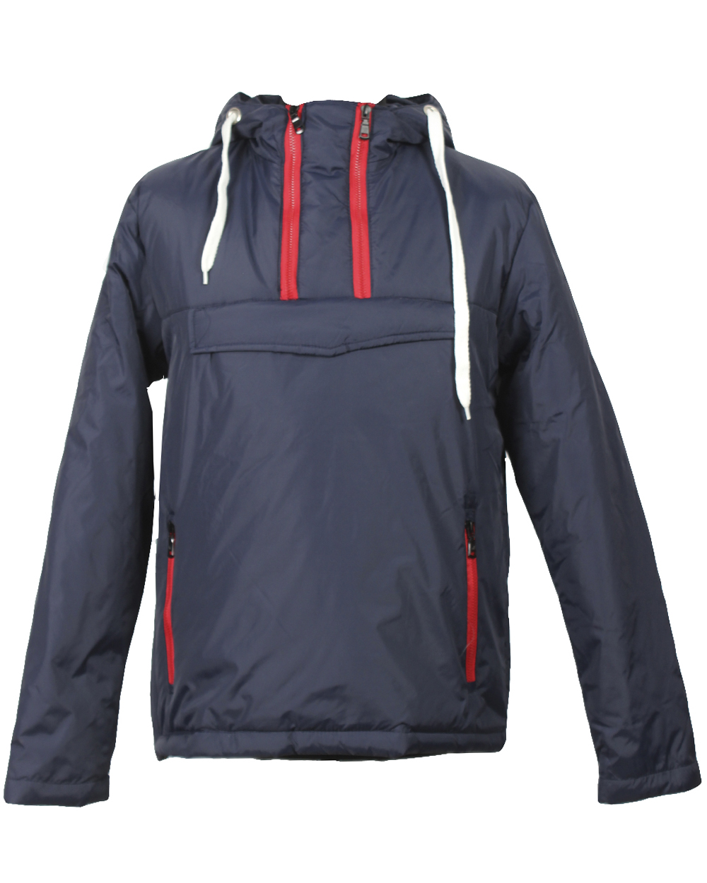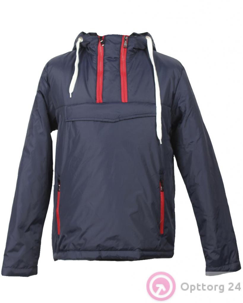 Симпотичная мужская стеганая куртка синего цвета с красными вставками. Данное изделие обладает оригинальными застежками на молнии и большими вместительными карманами