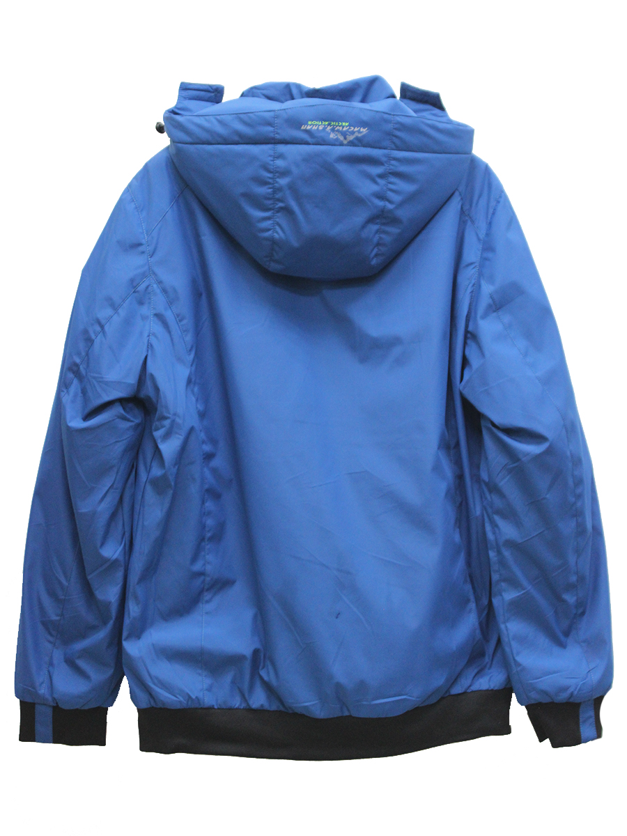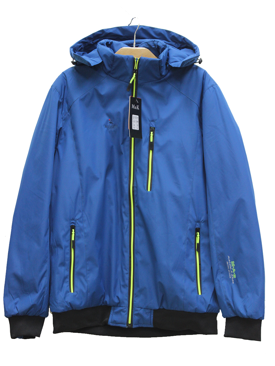 Описание: куртка мужская стеганая на синтепоне ярко-синияя. Есть капюшон и карманы на салатовой молнии.