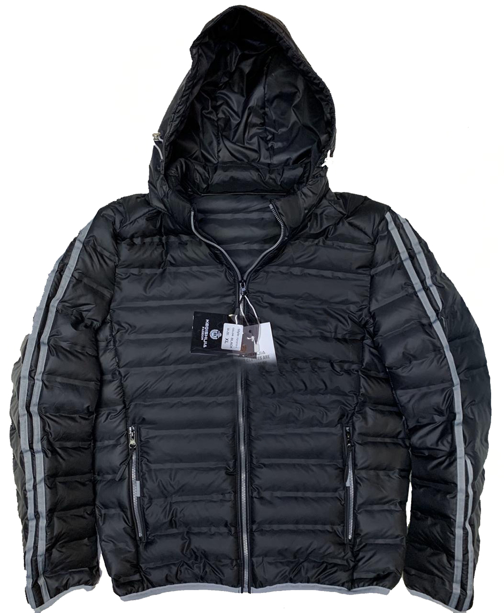Куртка выполнена прямого кроя с полосками серого цвета на рукавах. Легкая и теплая.