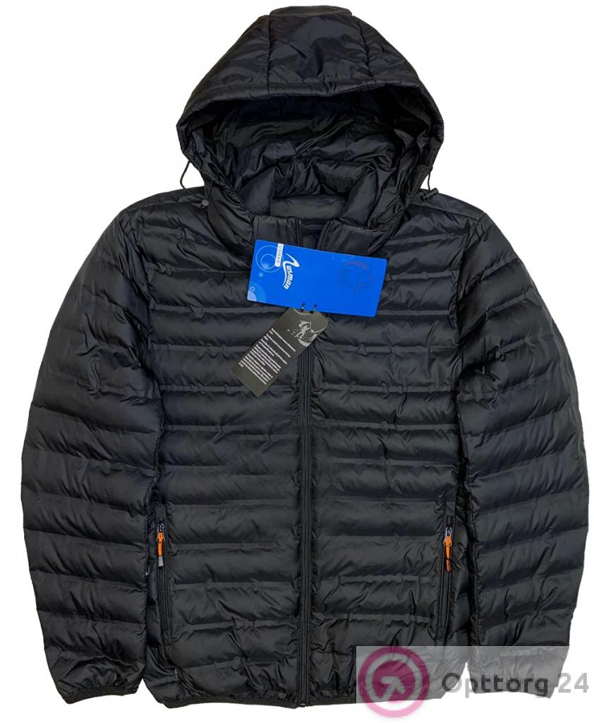 Куртка мужская стеганная на синтепоне с капюшоном, однотонная черного цвета оптом