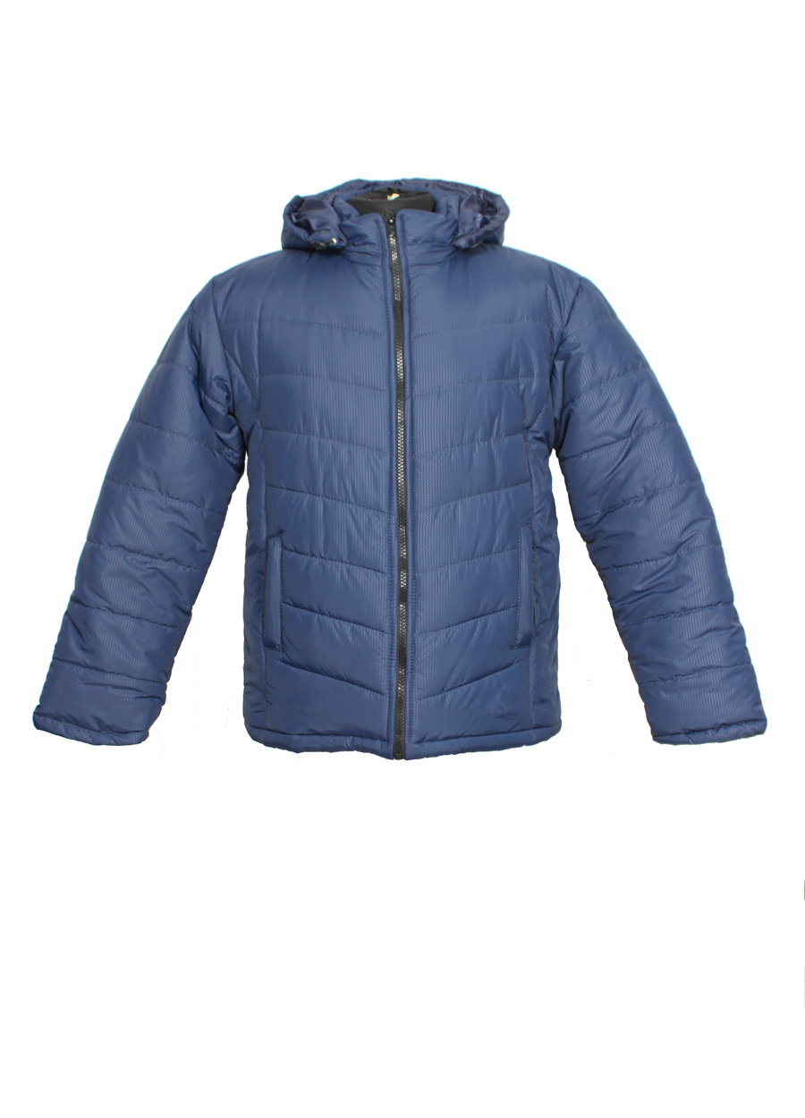 Мужская темно-синяя куртка на двойном синтепоне. Очень плотная и теплая, прекрасно защищает от холода и снега. Изделие имеет вместительные карманы, застежку-молнию и капюшон с регулировками