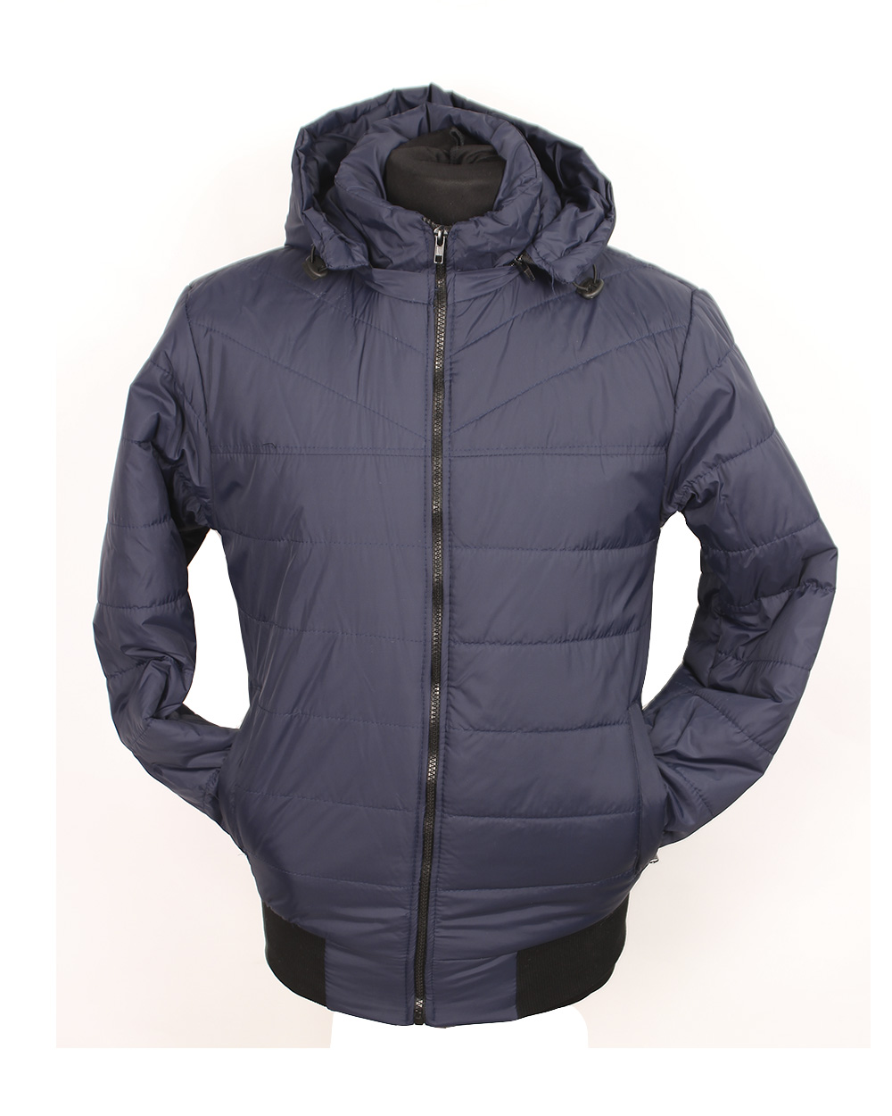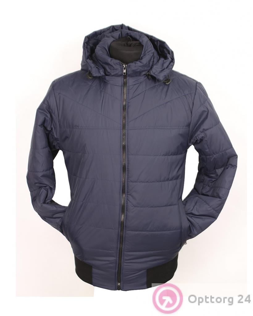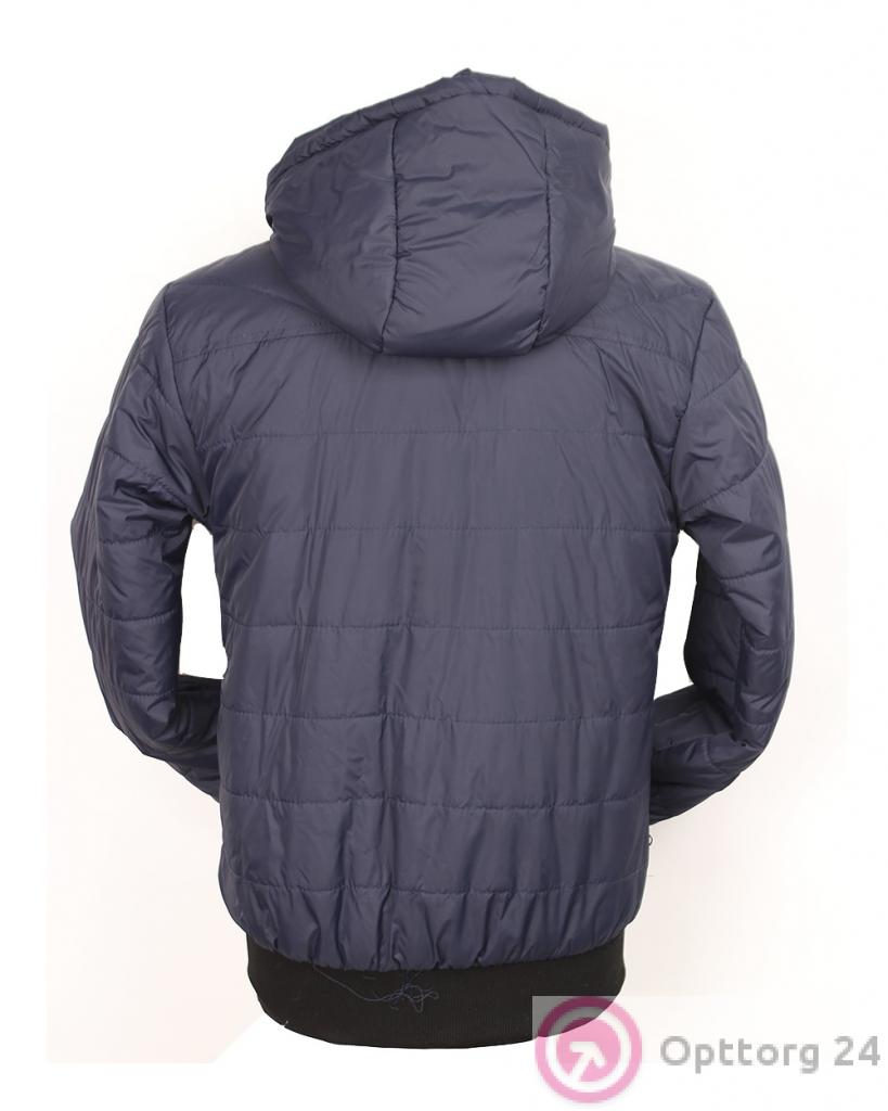 Куртка мужская темно-синего цвета с капюшоном оптом