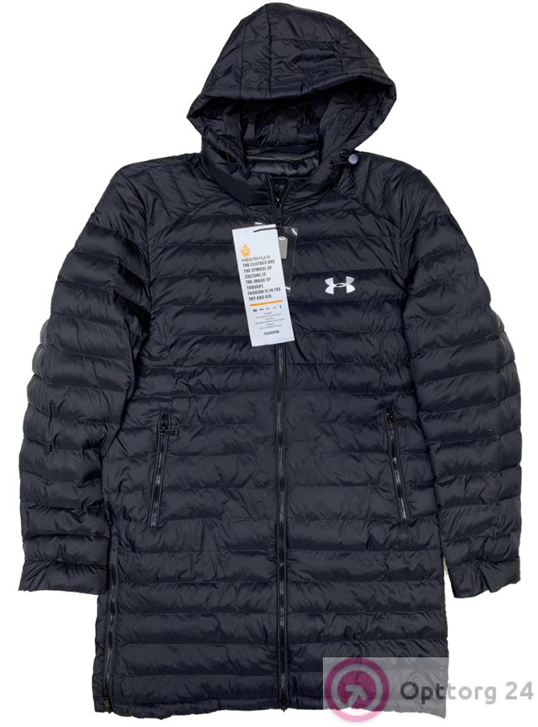 Куртка мужская удлиненная, стеганная с капюшоном черного цвета оптом