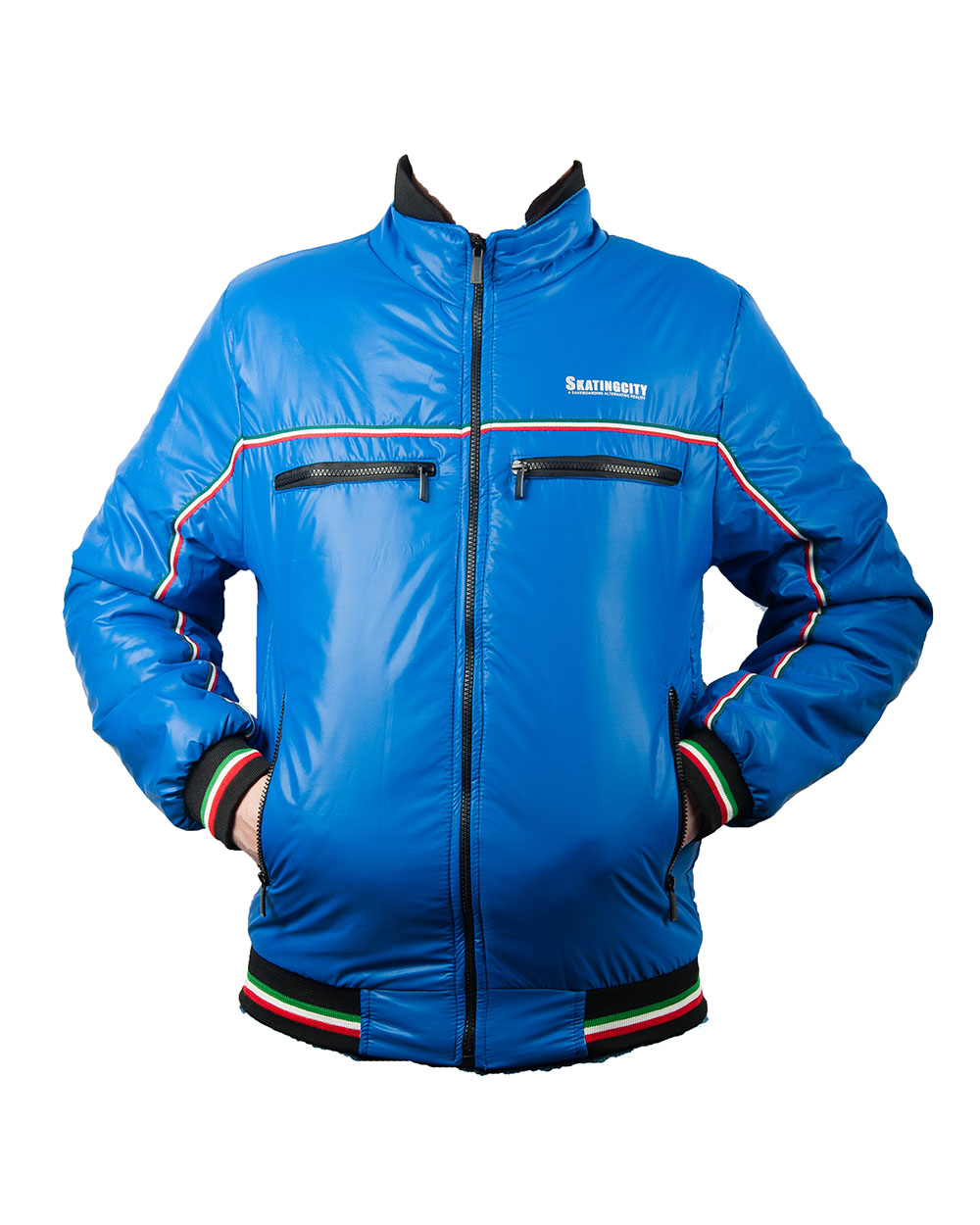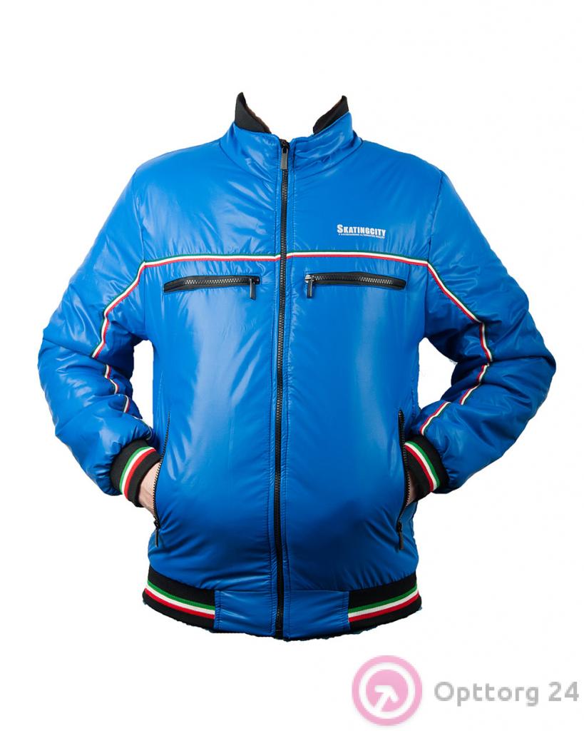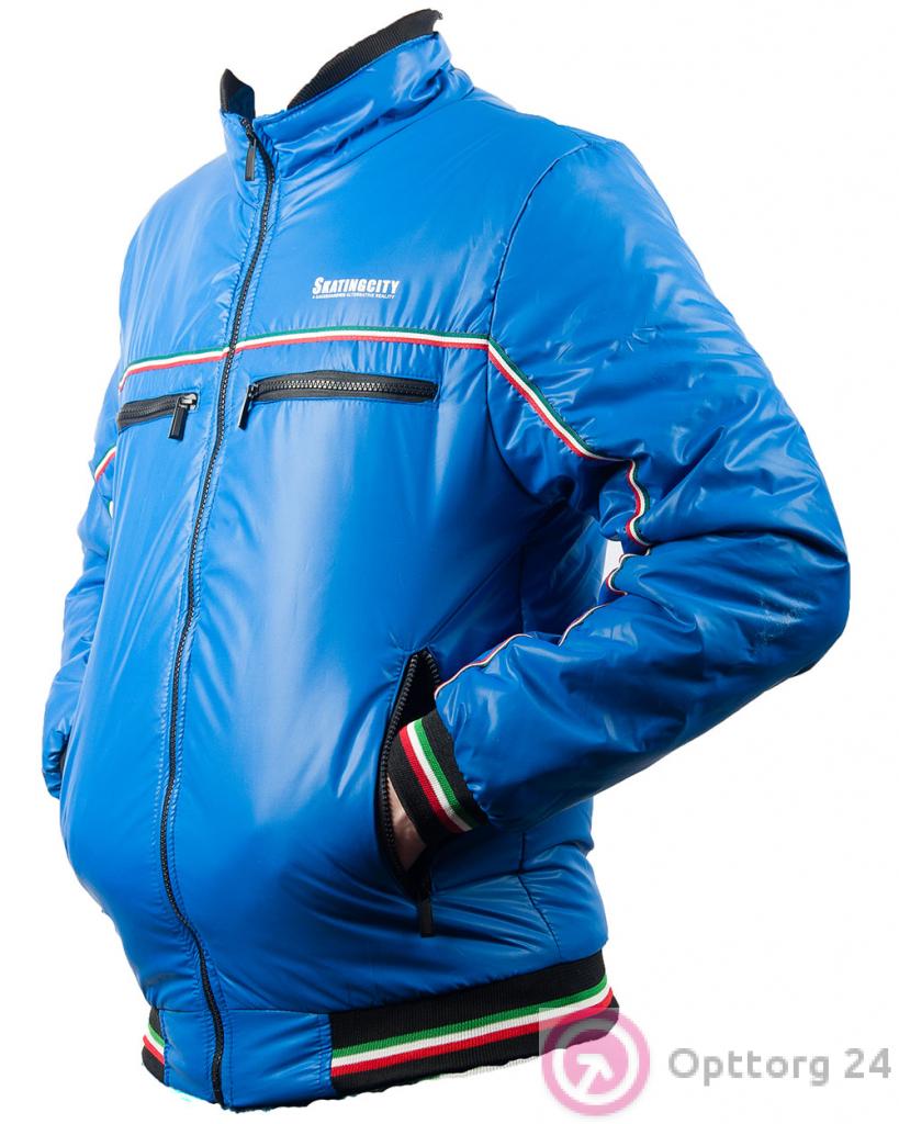 Куртка мужская ярко-синяя с цветной полоской оптом